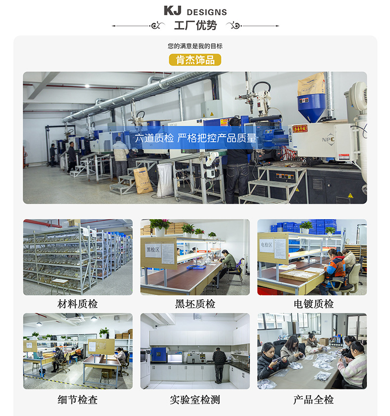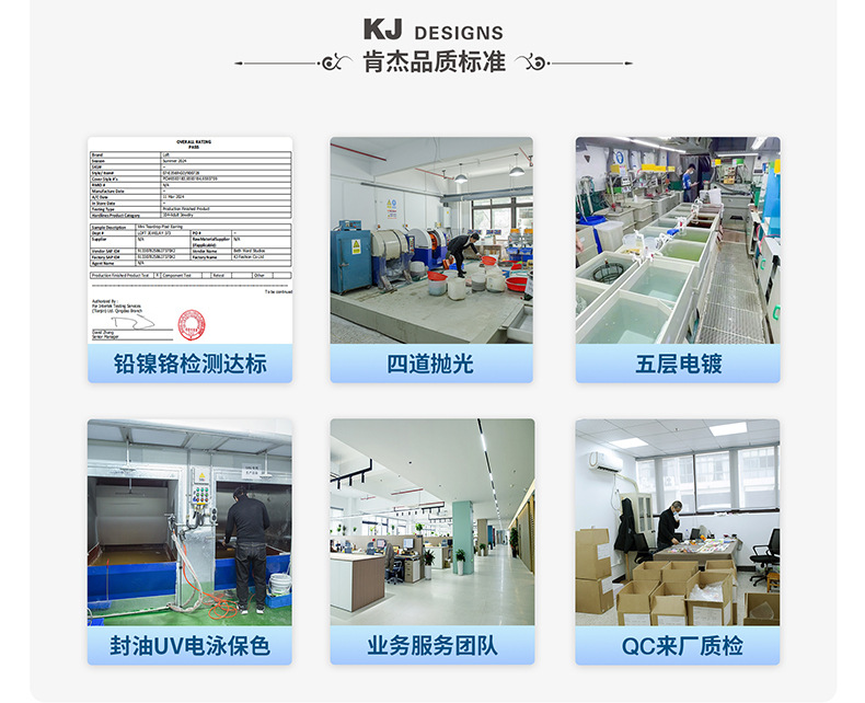 ケンジェ源工場は、カスタムジュエリー、合金、銅、銀、樹脂、図面によるカスタムネックレス、イヤリングの製作をサポートしており、サンプル代は無料です。
