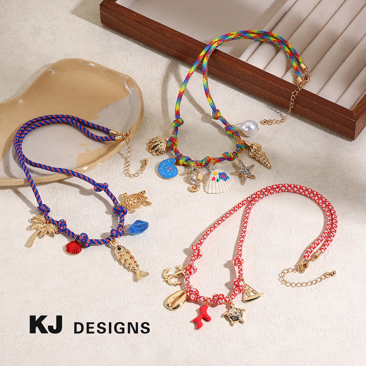 肯杰跨境热销彩绳手工编织项链贝壳多吊坠海洋度假风波西米亚项链