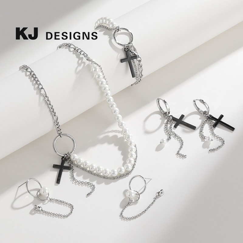 ケンジェ欧米秋冬新作クロスデングペンダント重ね付けネックレスins風ファッションチェーン真珠イヤリングセット