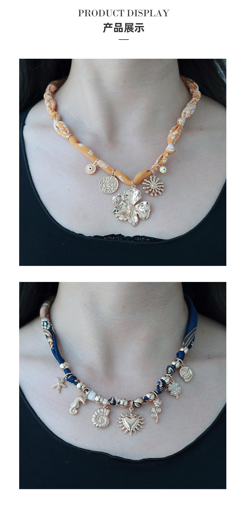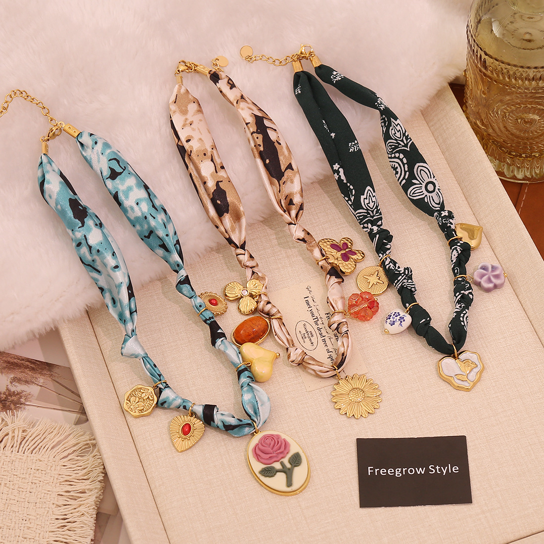 【冰萌】轻奢玫瑰花爱心多元素项链气质手工丝巾项饰配饰N1684