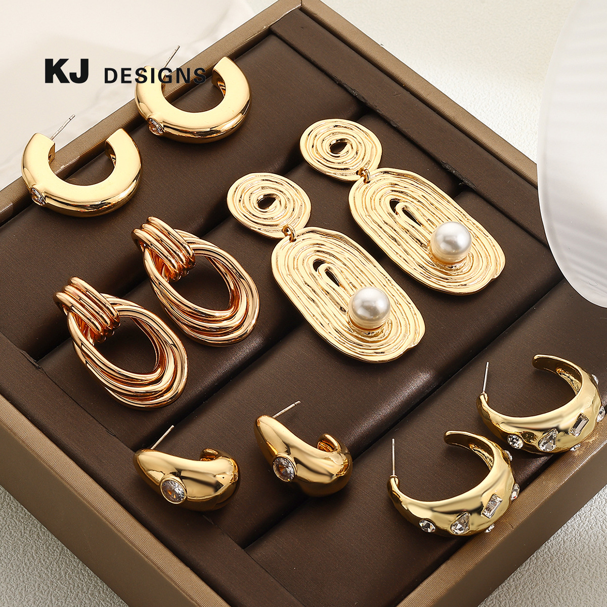 ケンジェフランスのレトロな雰囲気の金色の幾何学イヤリングのデザイン感があります。