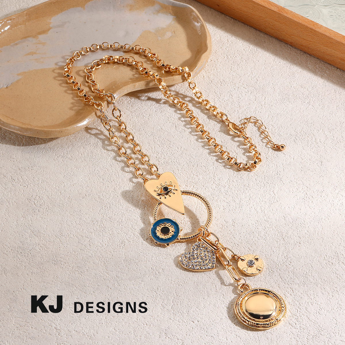 肯杰欧美时尚原创设计多元素吊坠项链爱心恶魔之眼古钱币多吊坠女