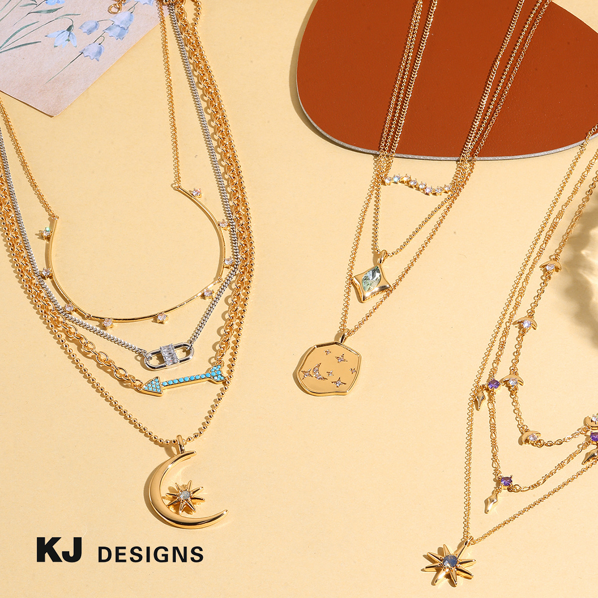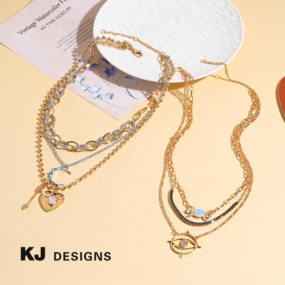 肯杰欧美时尚星月吊坠叠戴项链原创设计时尚气质精美铜镀金毛衣链