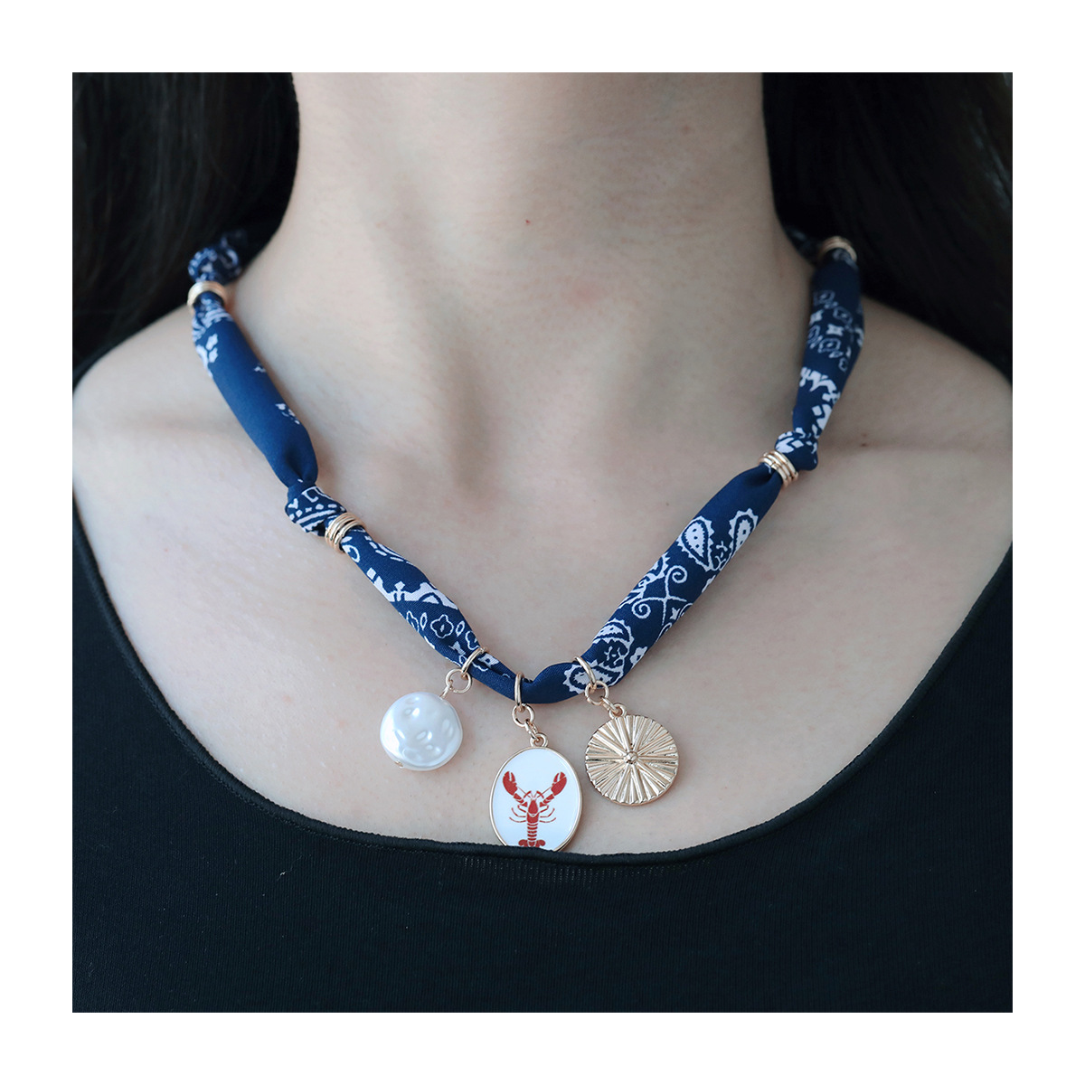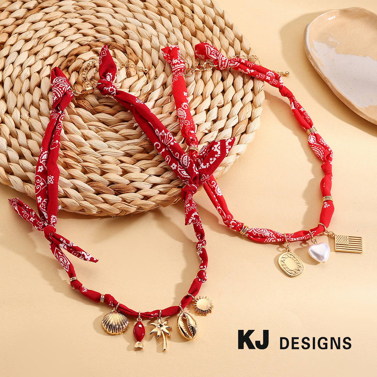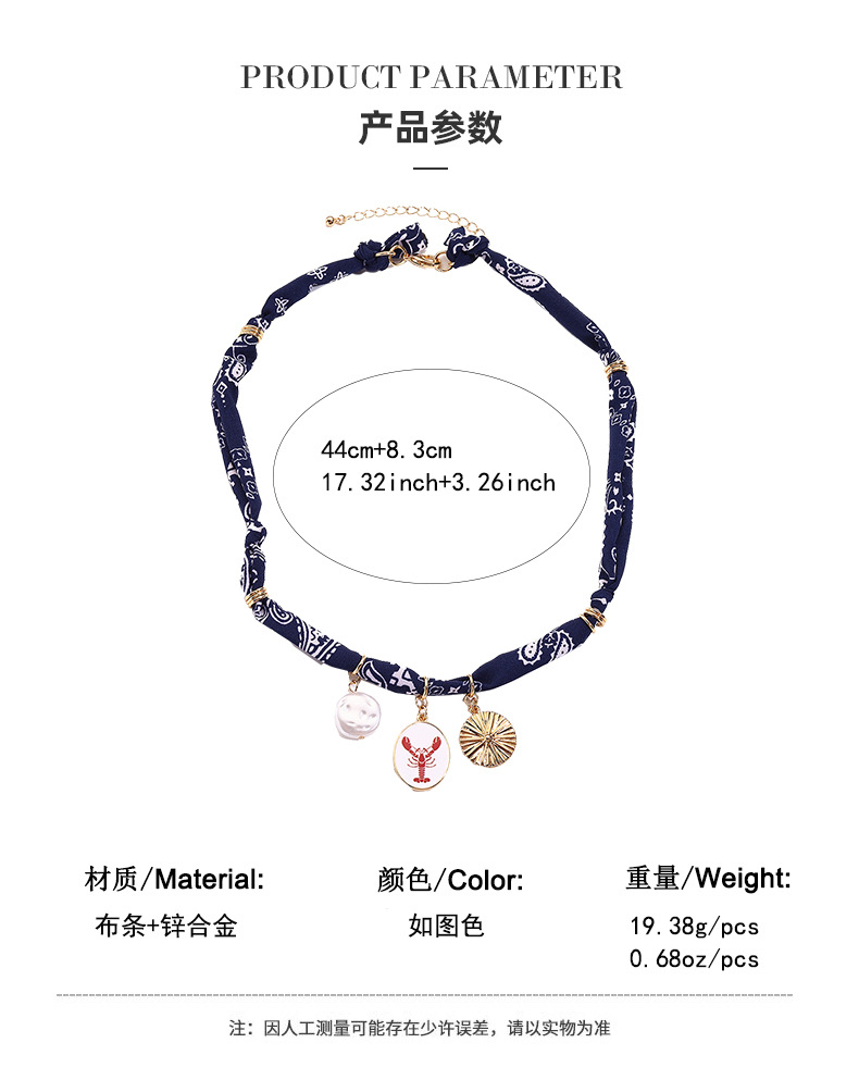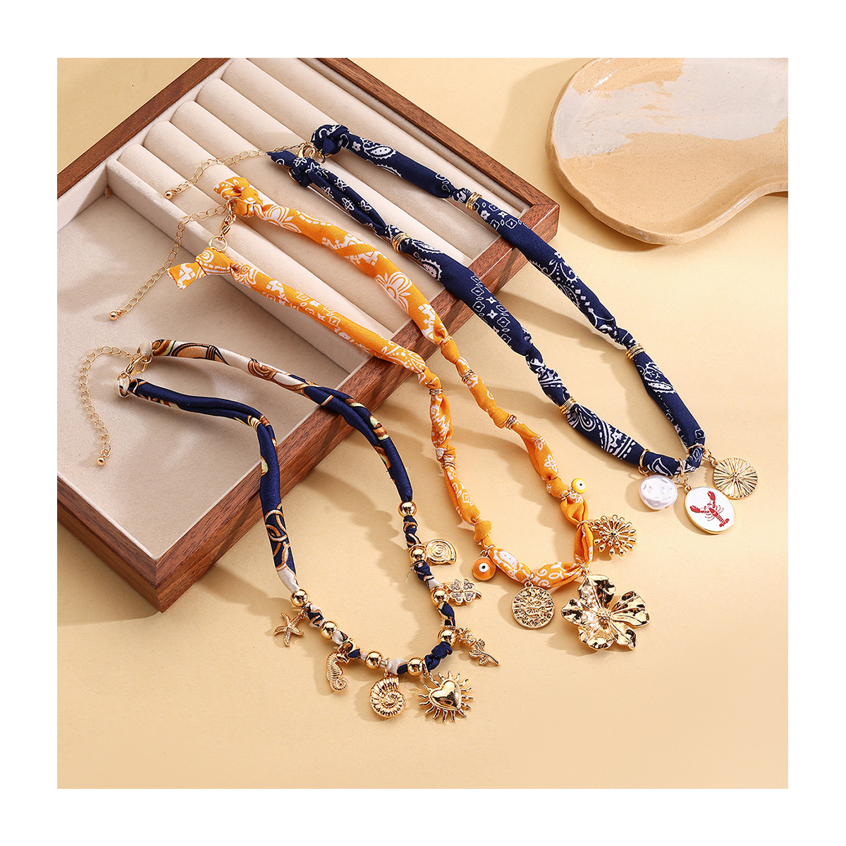 肯杰欧美时尚长条布艺多吊坠项链轻奢高级感珍珠彩色丝绸丝巾项链