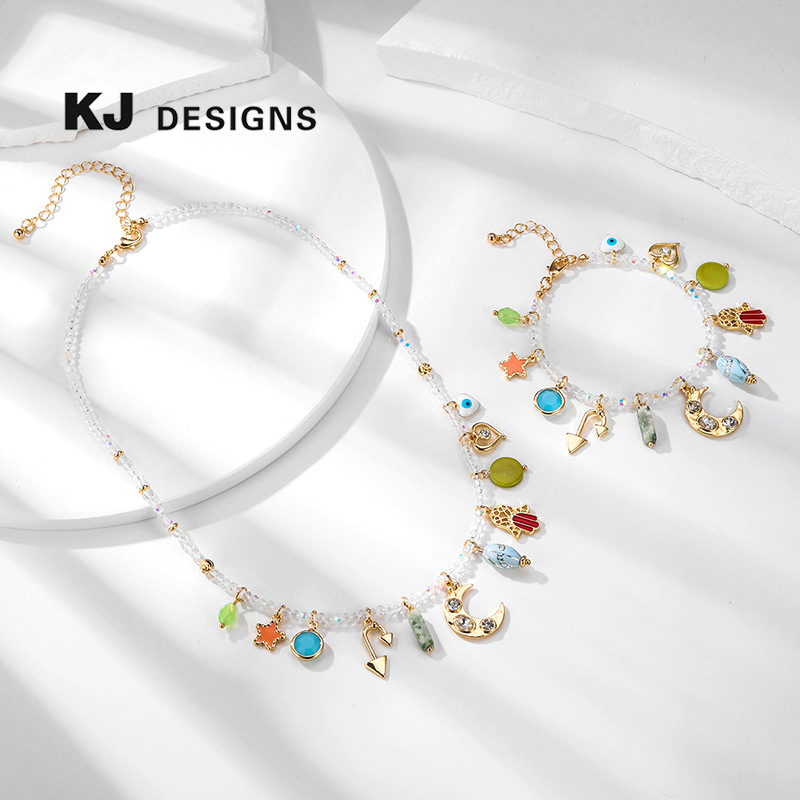 ケンジャーの夏のファッションのオリジナルのペンダントのネックレスのブレスレットの組み合わせの欧米のカラーのファッションの流行の月の星の女性