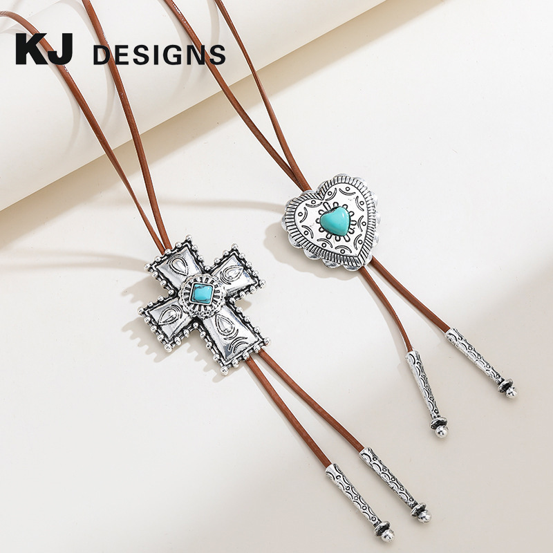 ケンジ欧米レトロターコイズクロスネックレスクロスボーダーファッション革紐色あせないレトロ愛ハートセーターチェーン