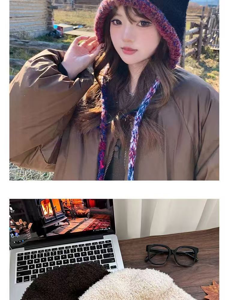 代発新商品の韓系秋冬帽子の女性保温冷帽子のニットは、熊耳の毛糸雷鋒帽を厚くします。