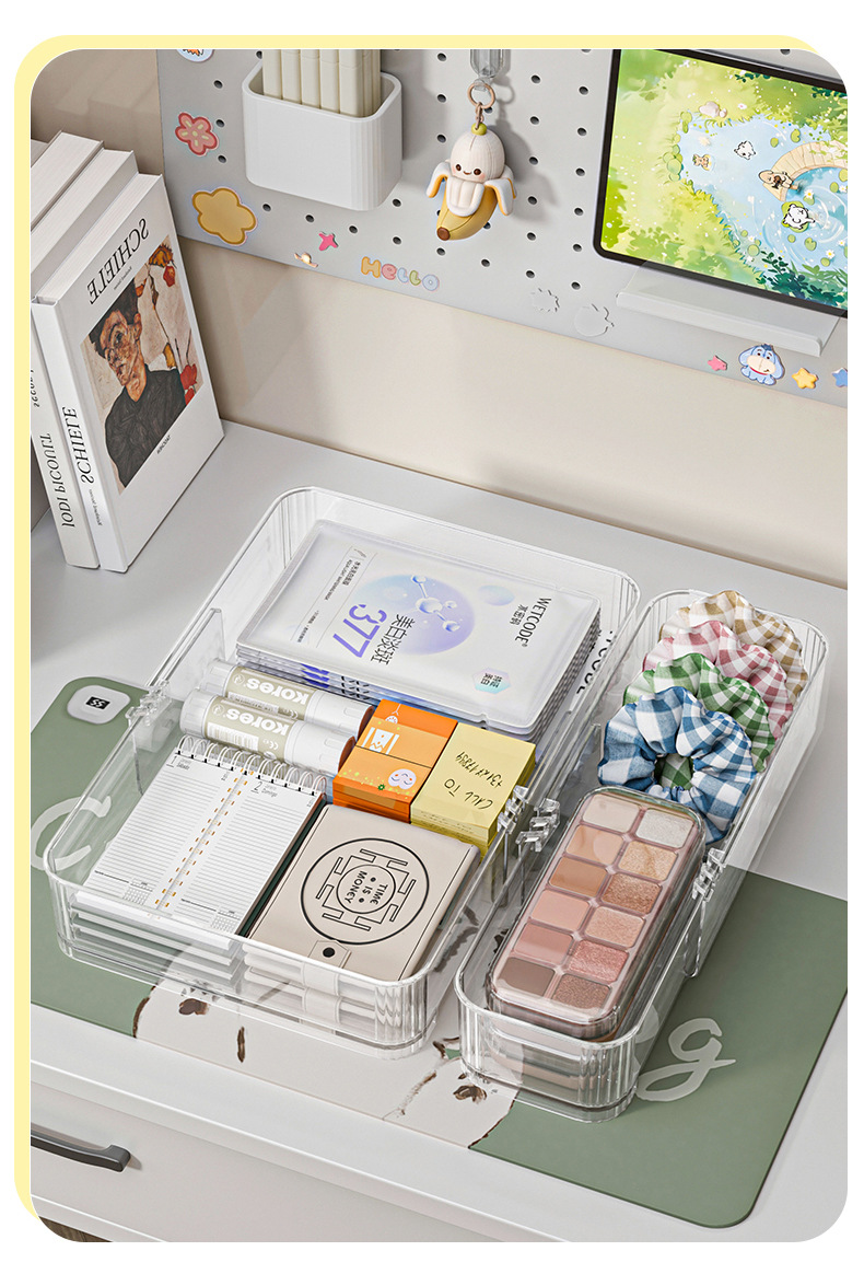 化粧品収納ボックス学生寮文房具デスクトップスナックプラスチック収納ボックス家庭用ごみバスケット収納バスケット