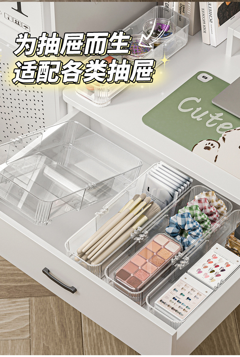 透明抽屉分隔收纳盒可自由伸缩叠加收纳盒桌面整理杂物收纳分格盒