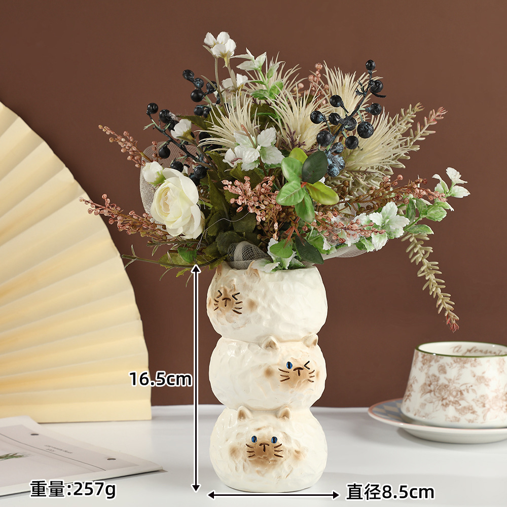 暹罗猫花瓶树脂装饰花瓶入户玄关插花装饰三只猫花瓶猫咪花瓶摆饰