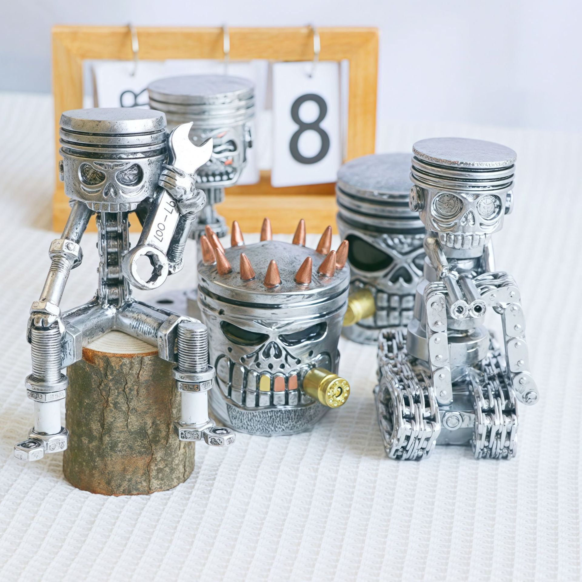 クロスボーダー ピストン スカルフェイス オーナメント 工業機械 スカルフェイス レンチ ギア 頭蓋骨 人型 レジン工芸品