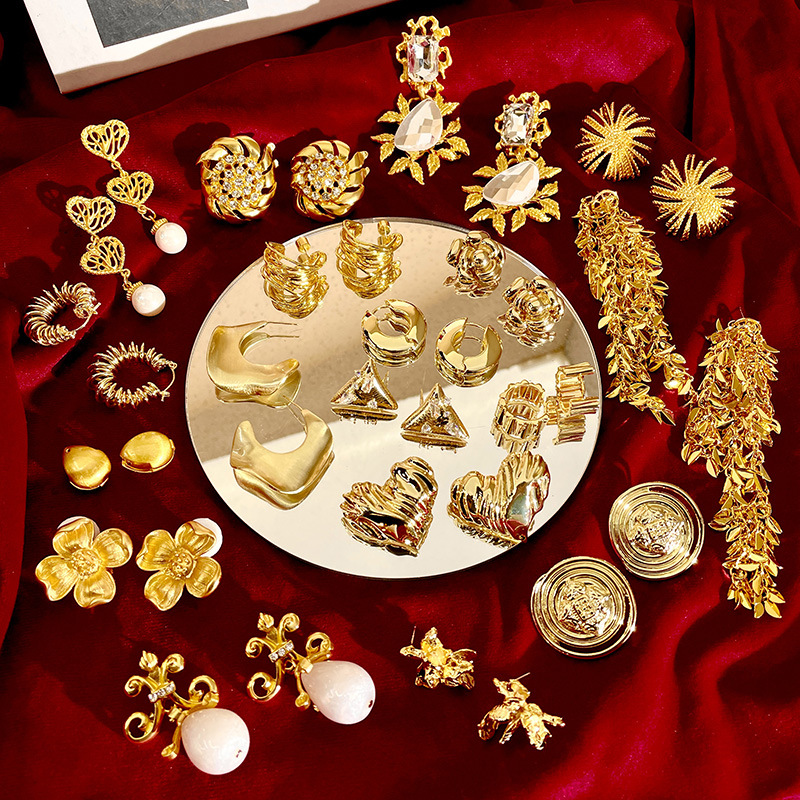欧美复古中古vintage金色系列耳环镀金不易撞款耳钉高级感耳饰女