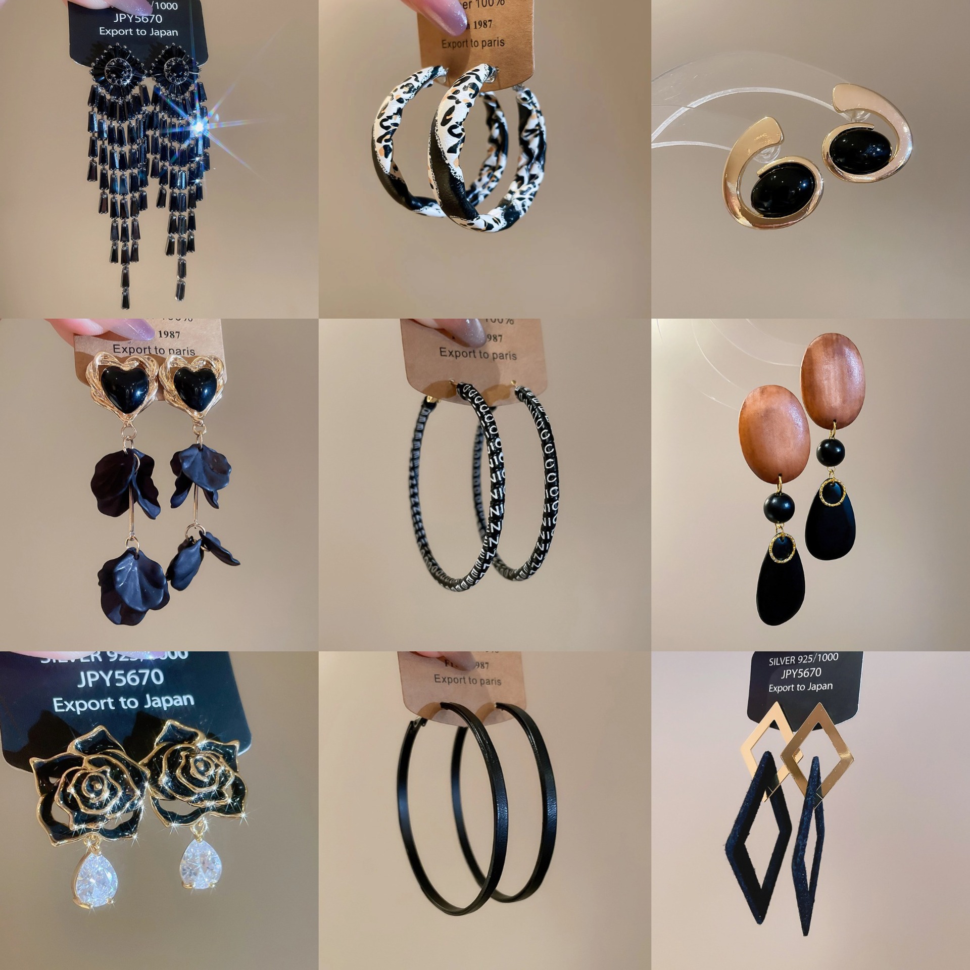 黑色系列银针几何流苏耳环轻奢高级感精致耳钉设计感小众耳饰批发