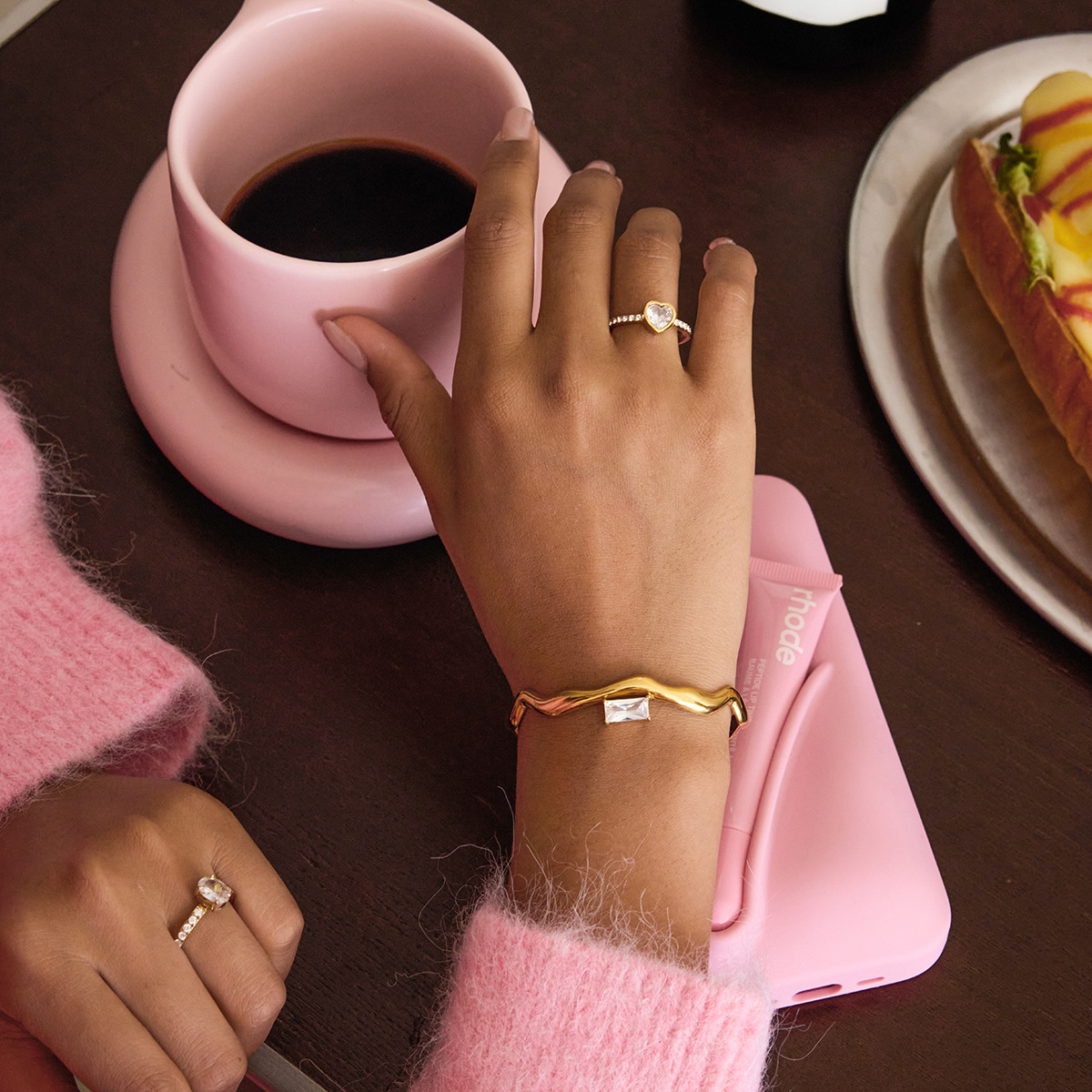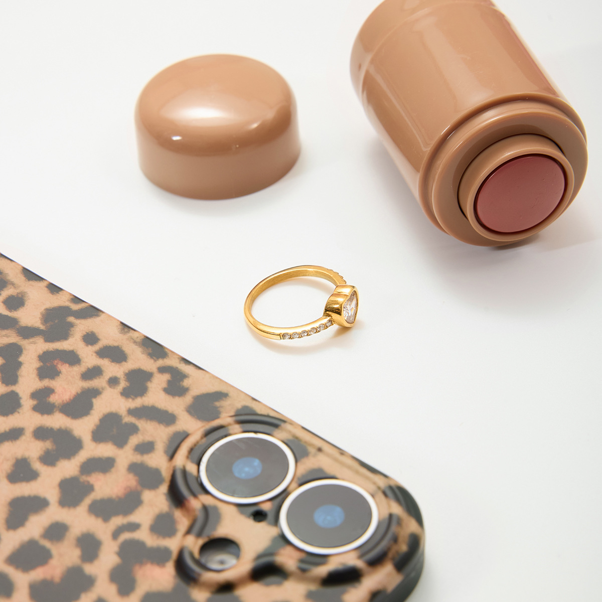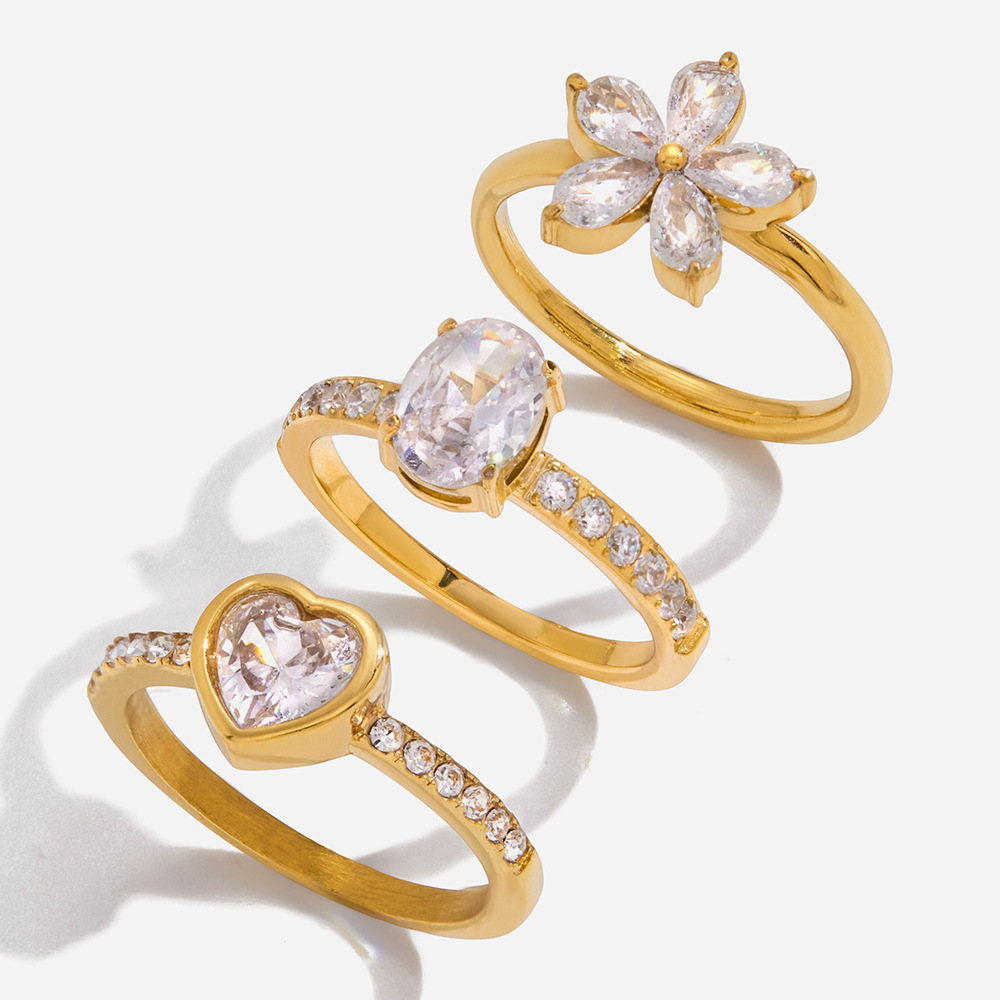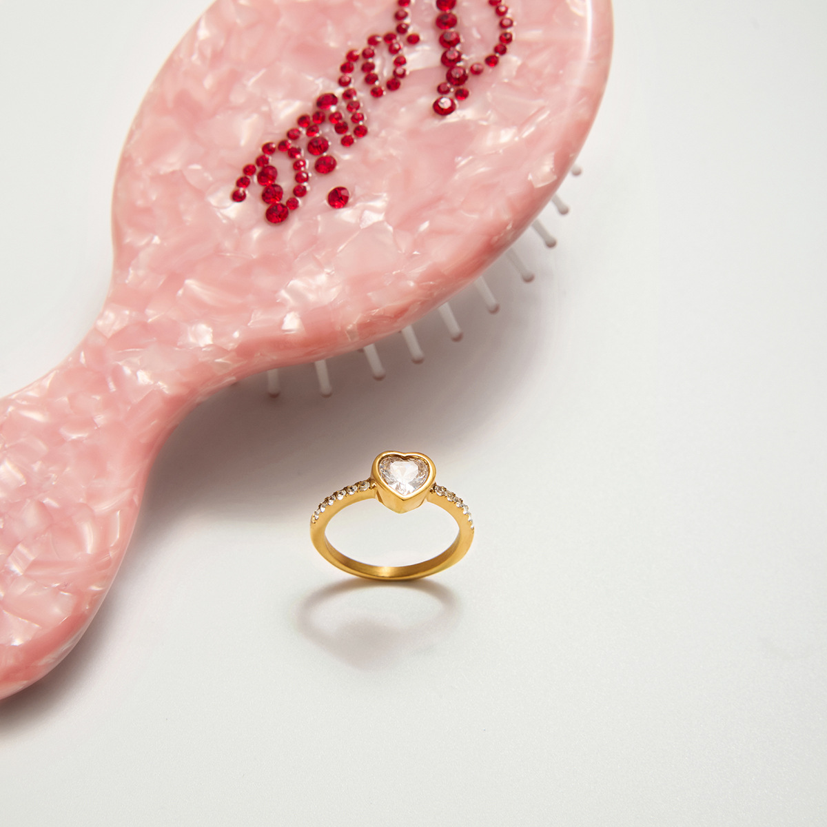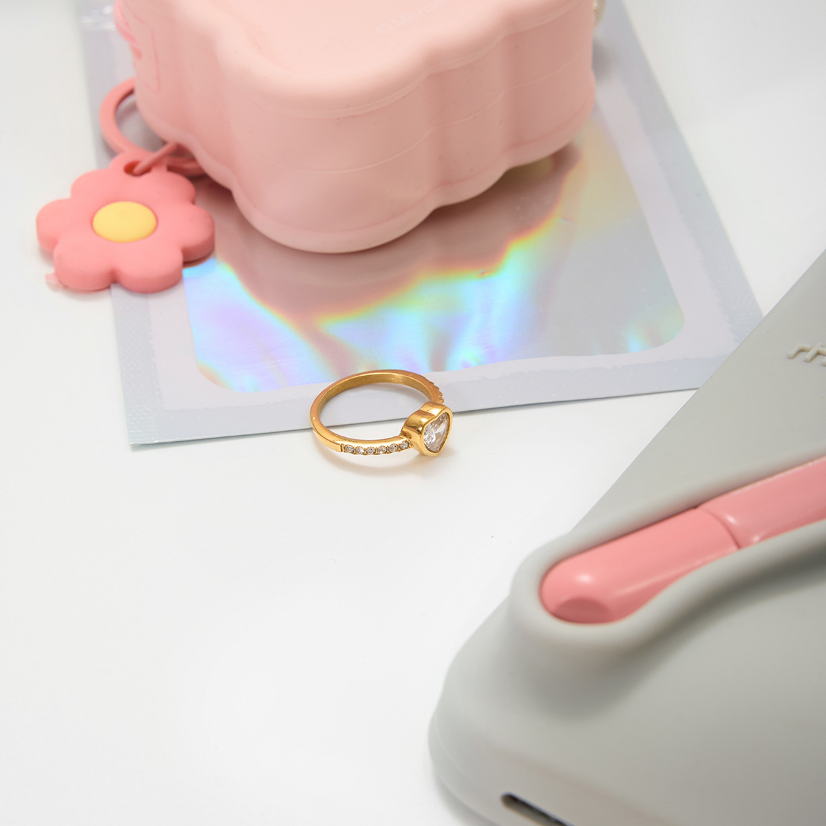 静俏设计感经典风18K 金不锈钢爱心锆石戒指小众高级手饰轻奢跨境