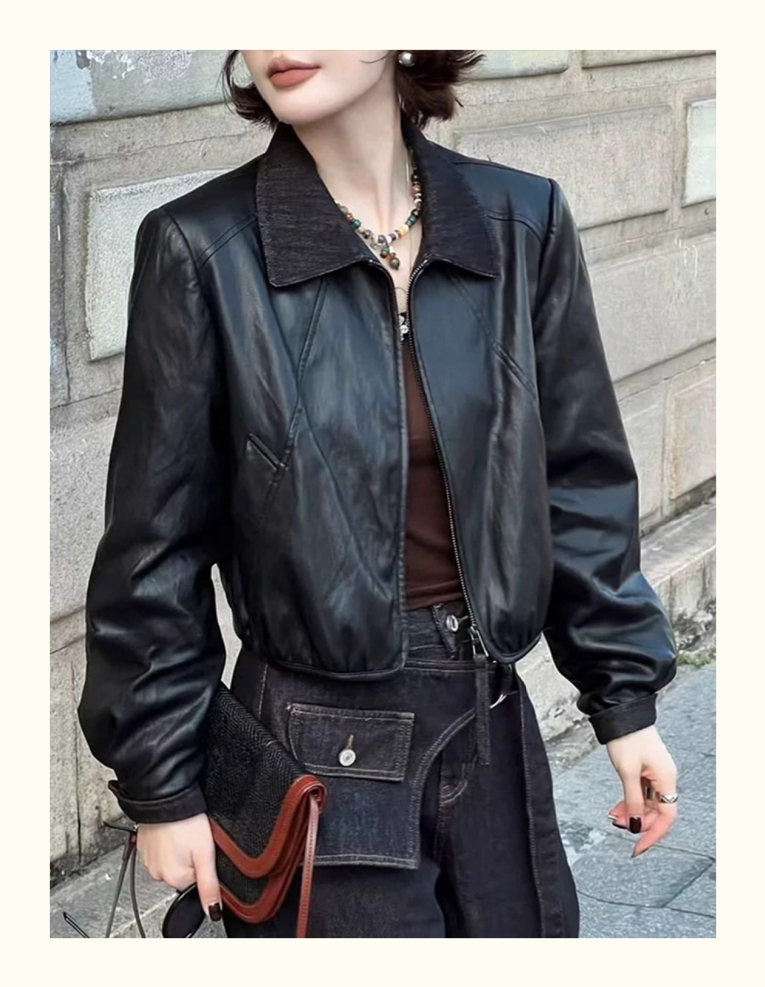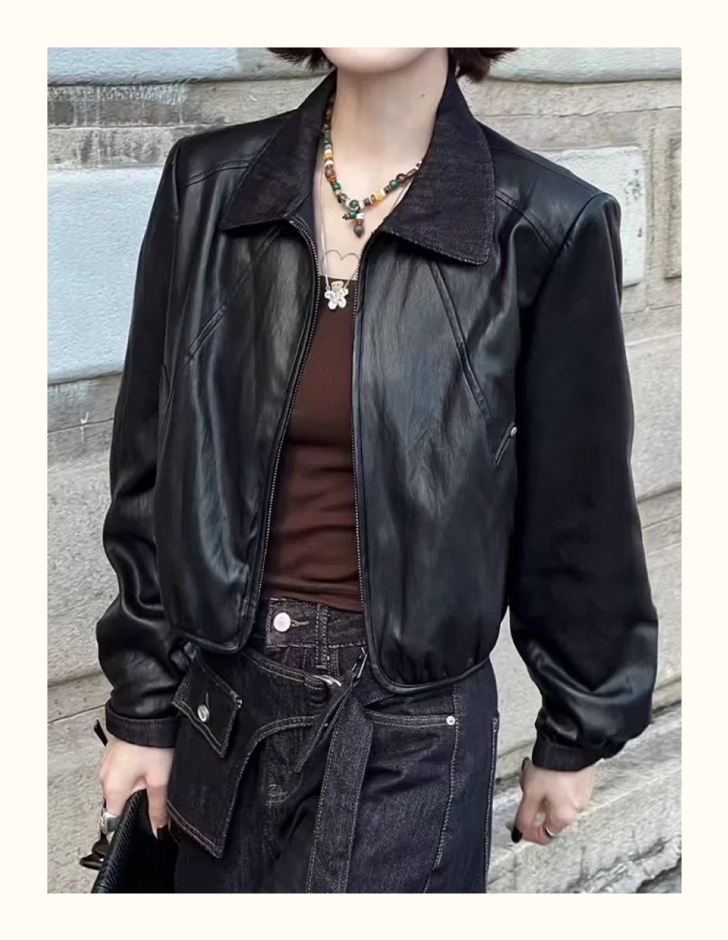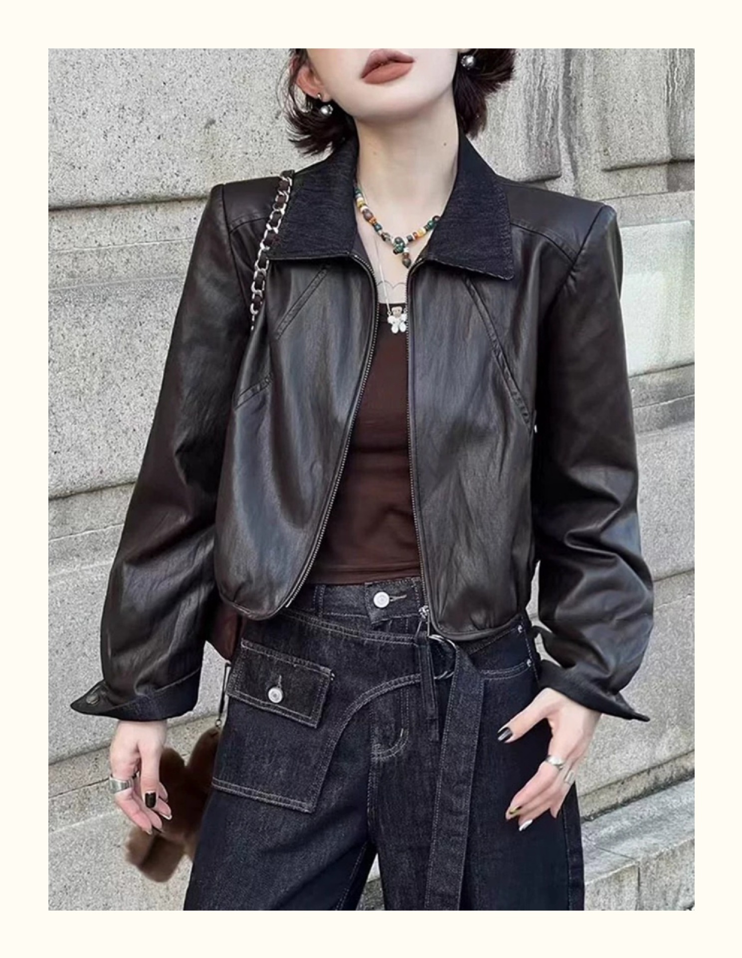 翻领短款PU皮衣外套女2025秋季新款韩版时尚气质百搭机车夹克上衣