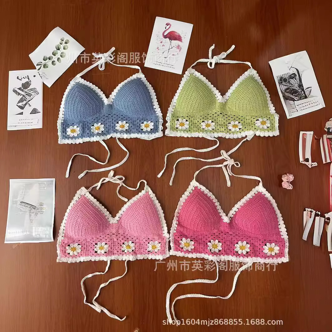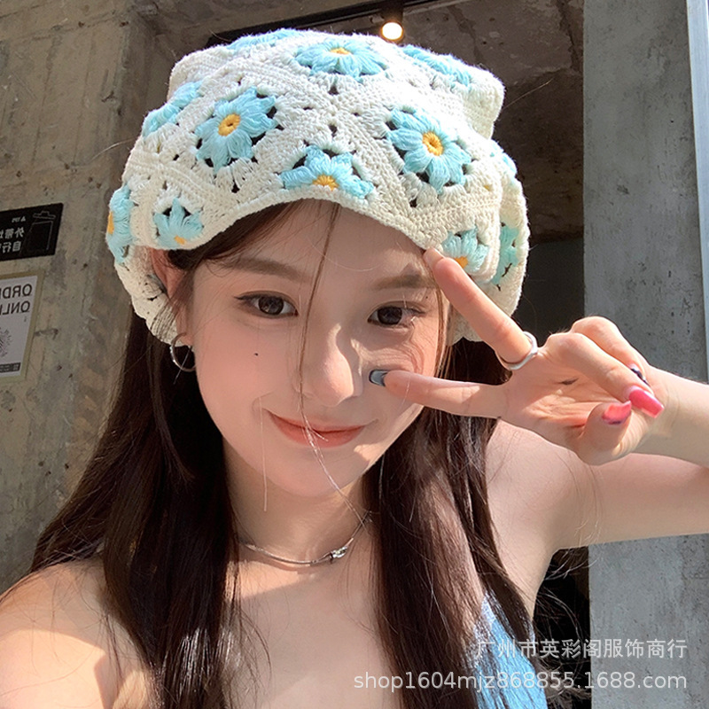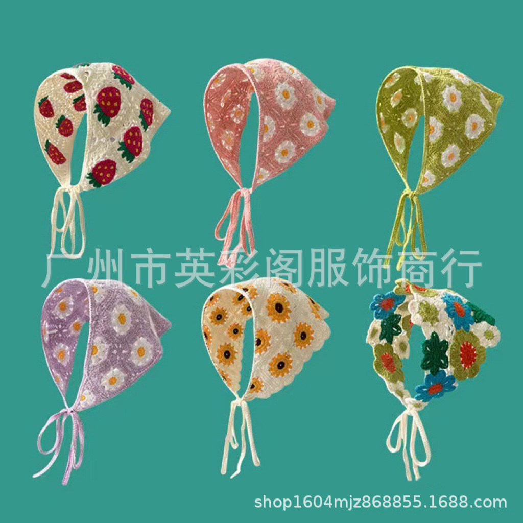 韓国版の甘い透かし彫りのフックの花のニットの三角のタオルの女性の小さい菊のドーパミンの少女の春秋旅行の髪飾り