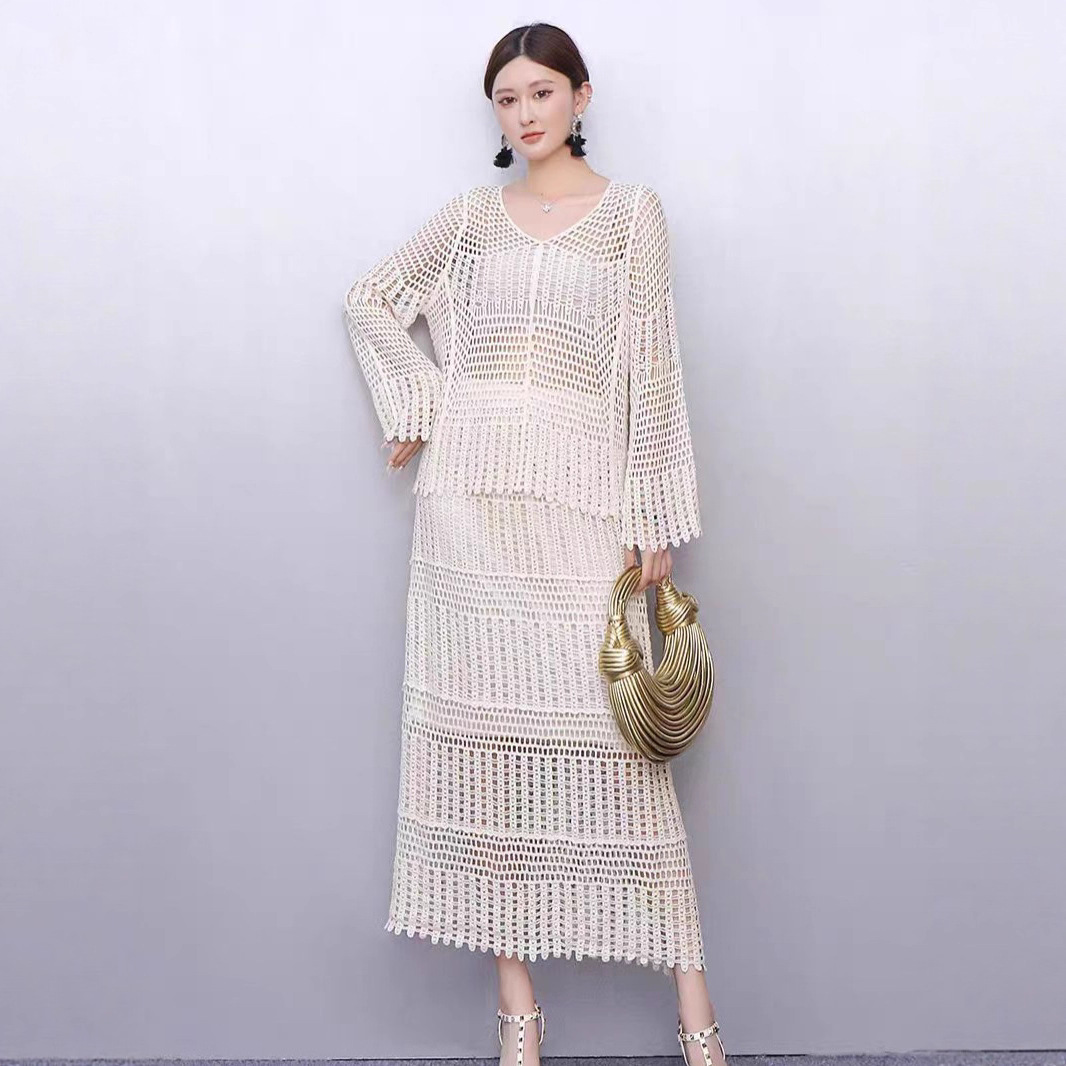 镂空针织上衣裙子两件套轻奢盐系高级感纯欲甜辣风炸街套装女夏季