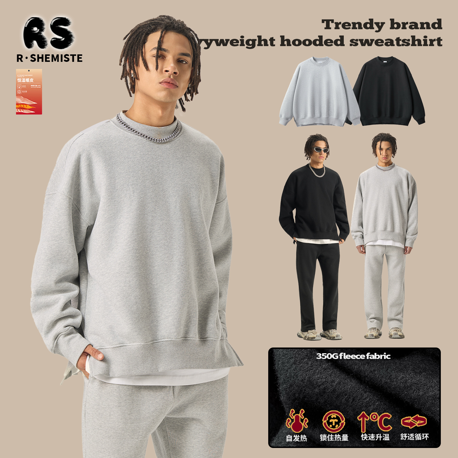 RSメンズ | 「レイヤードサイドスリット」350Gフリースクロスボーダーラウンドネックスウェットシャツメンズアメリカンソリッドカラーメンズスウェットシャツ