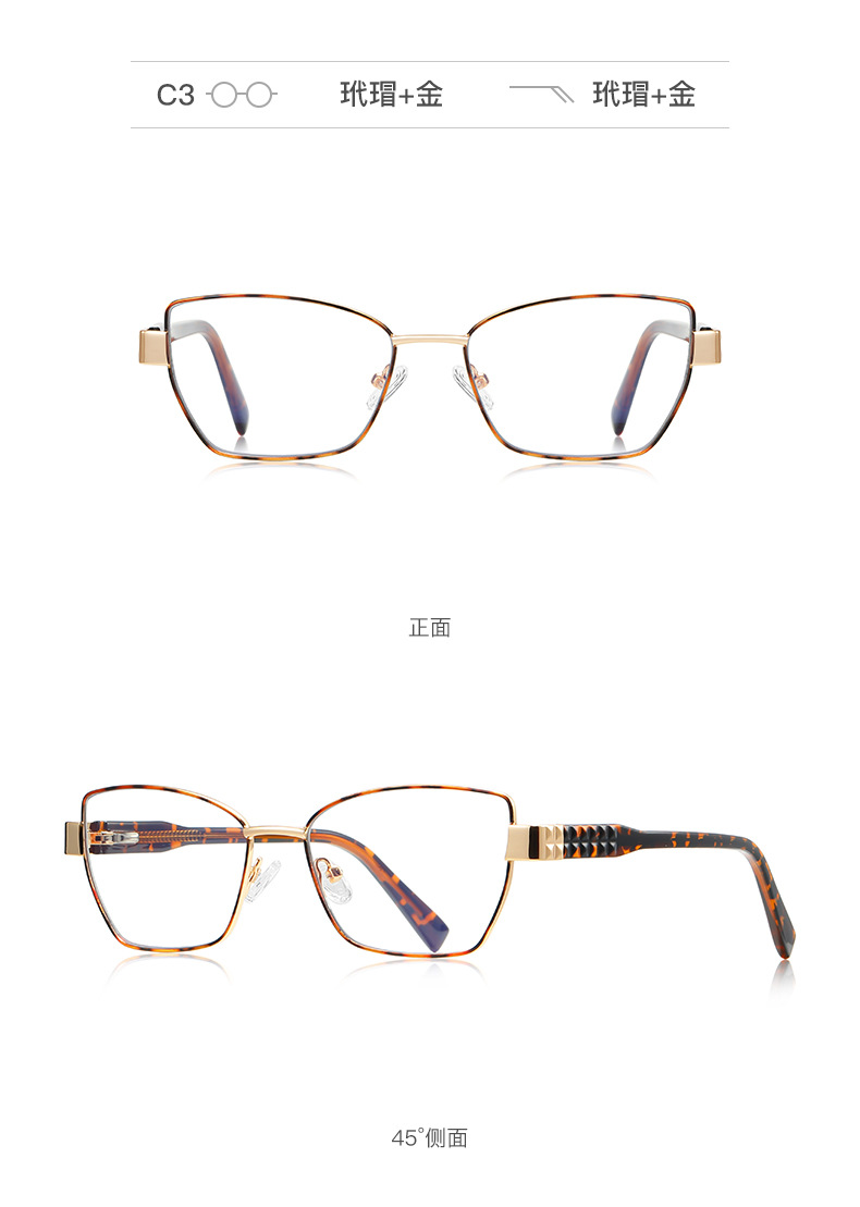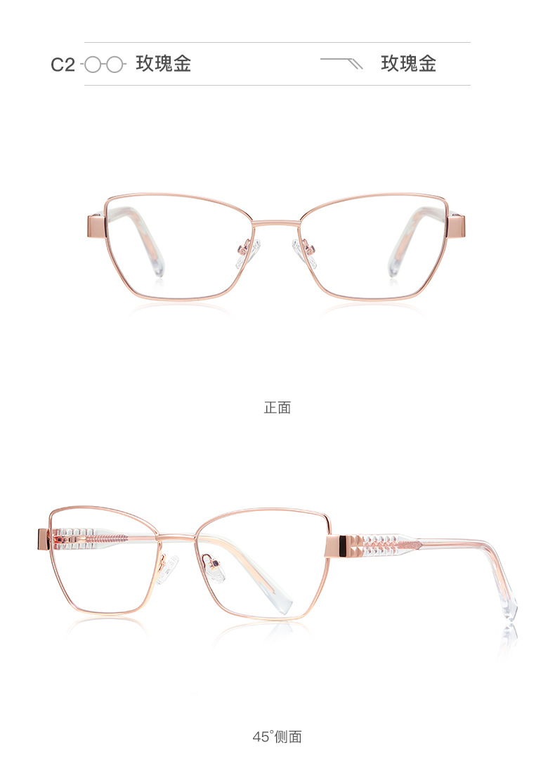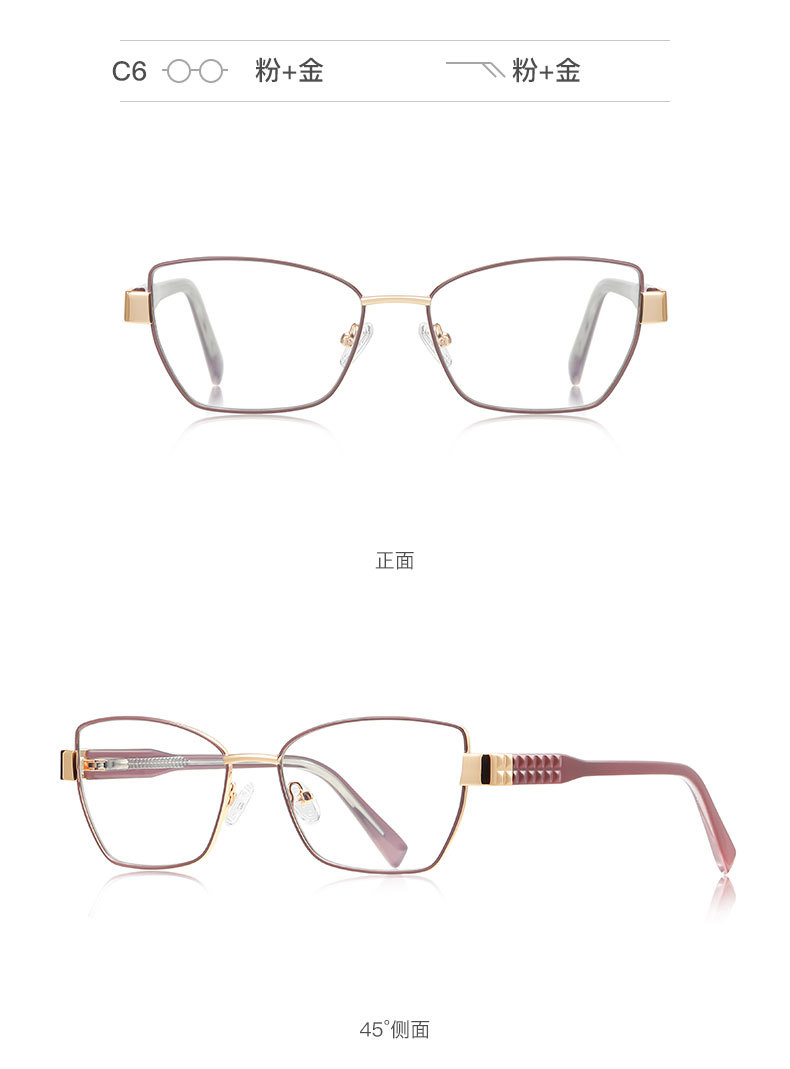 镜框颜色 C1金/亮黑框,C2玫瑰金/亮透明框,C3金/茶豆花框,C4金/拖面黑框,C5银/拖实蓝框,C6金/实藕粉框