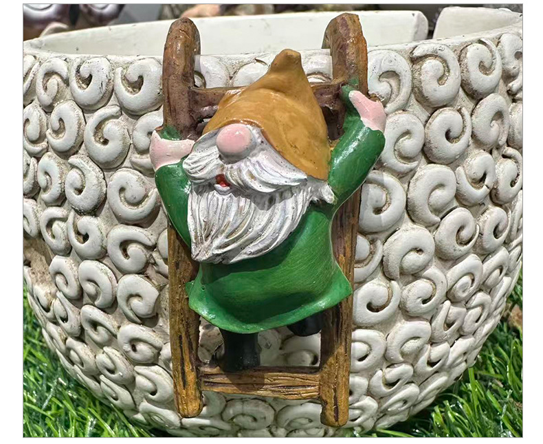 新品卡通套三矮人爬梯子摆件花盆挂件花园庭院阳台壁挂装饰品吊件