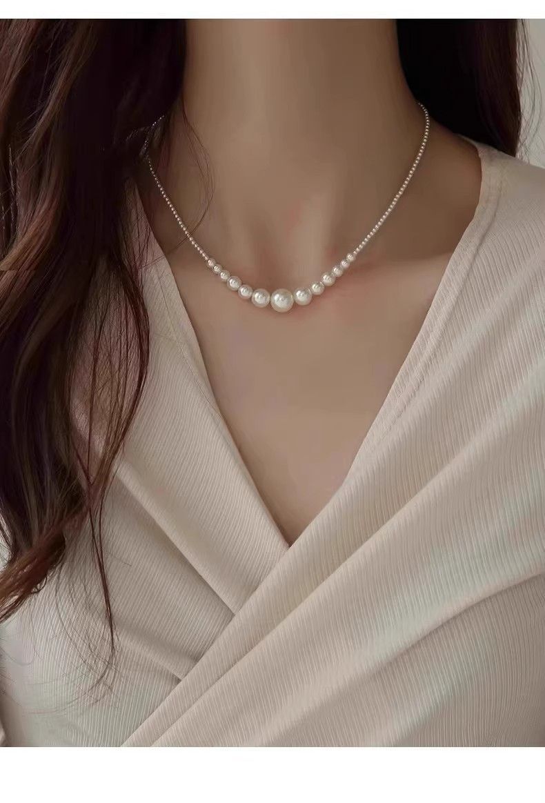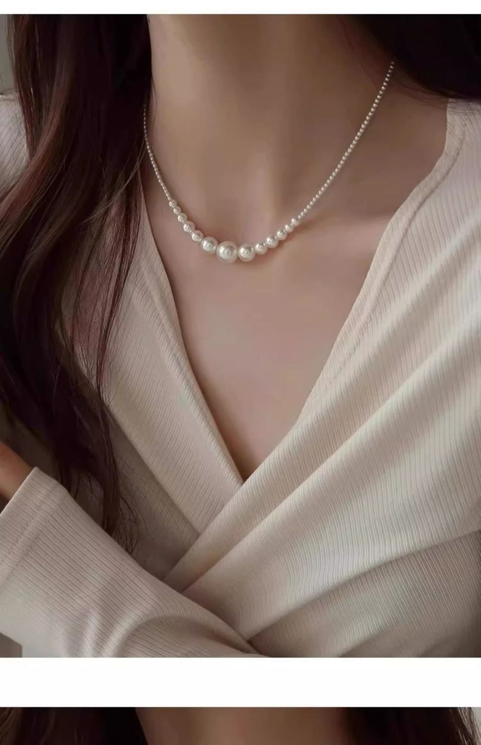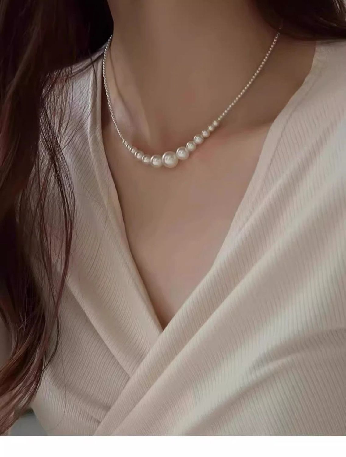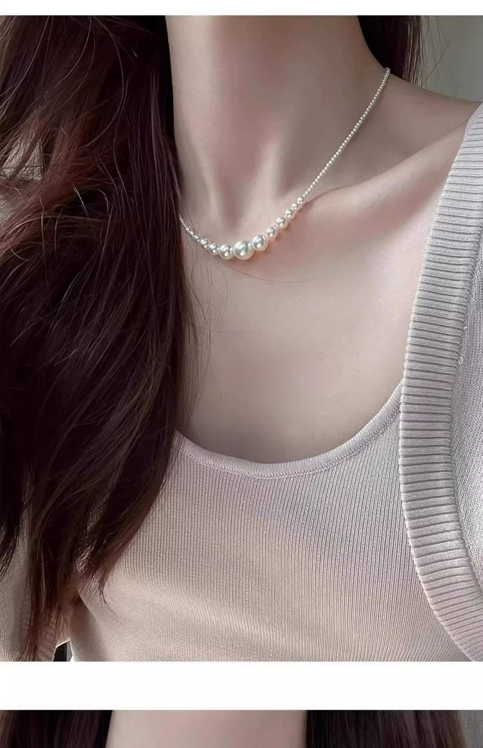 土星双层珍珠磁吸式项链女2025新款锁骨链轻奢小众设计感海边颈链