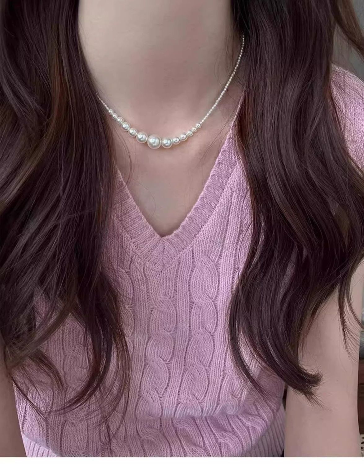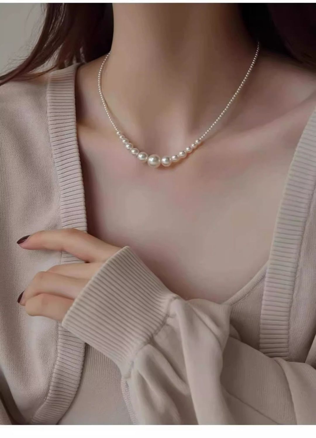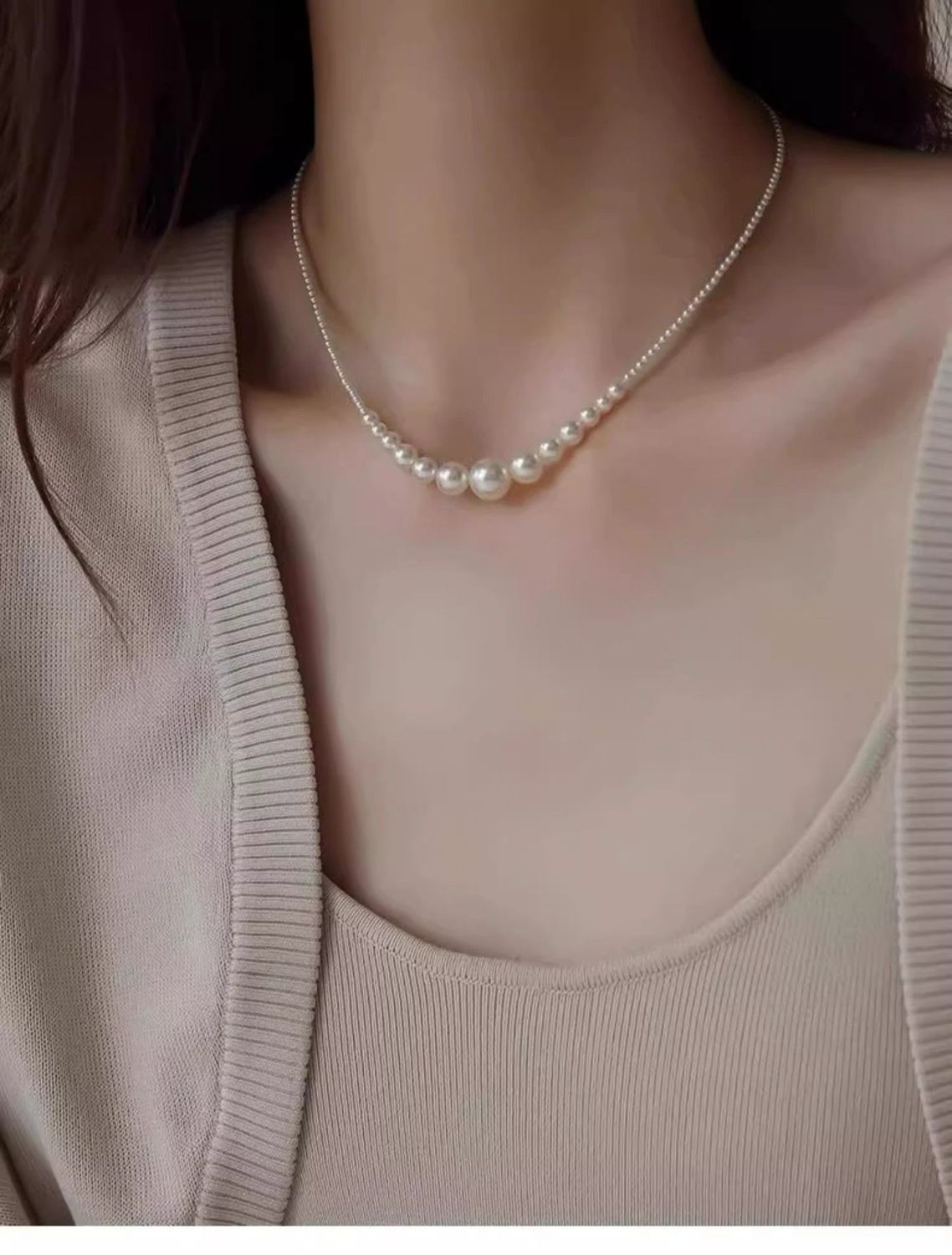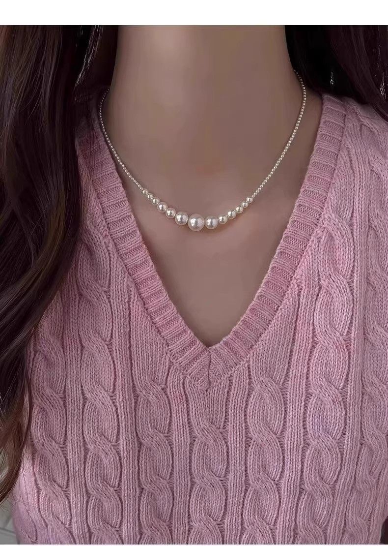 土星双层珍珠磁吸式项链女2025新款锁骨链轻奢小众设计感海边颈链