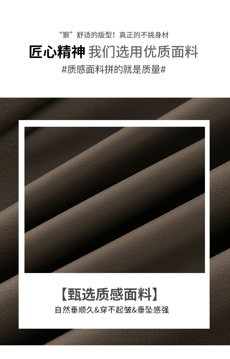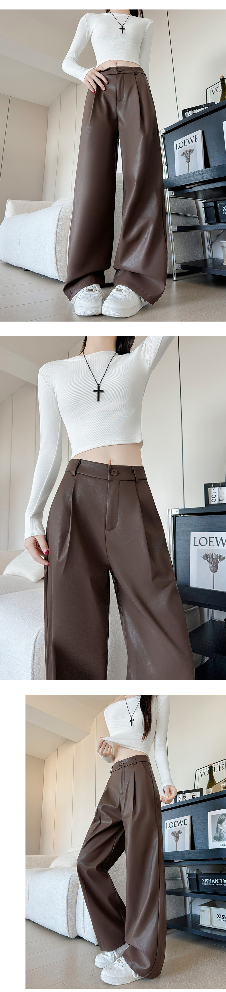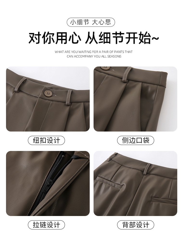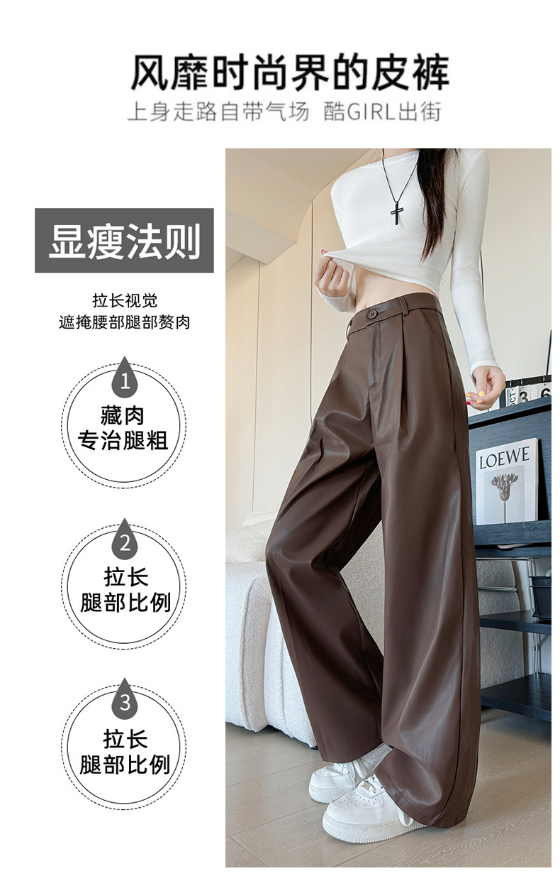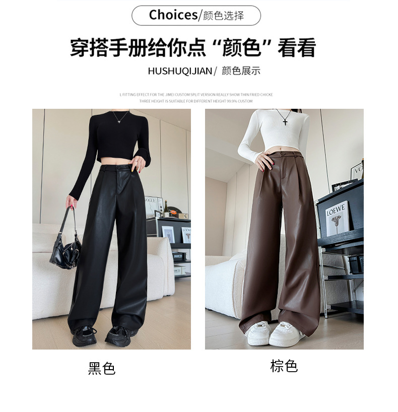 棕色西装皮裤女秋冬新款显瘦高腰直筒裤休闲宽松高级感PU皮阔腿裤