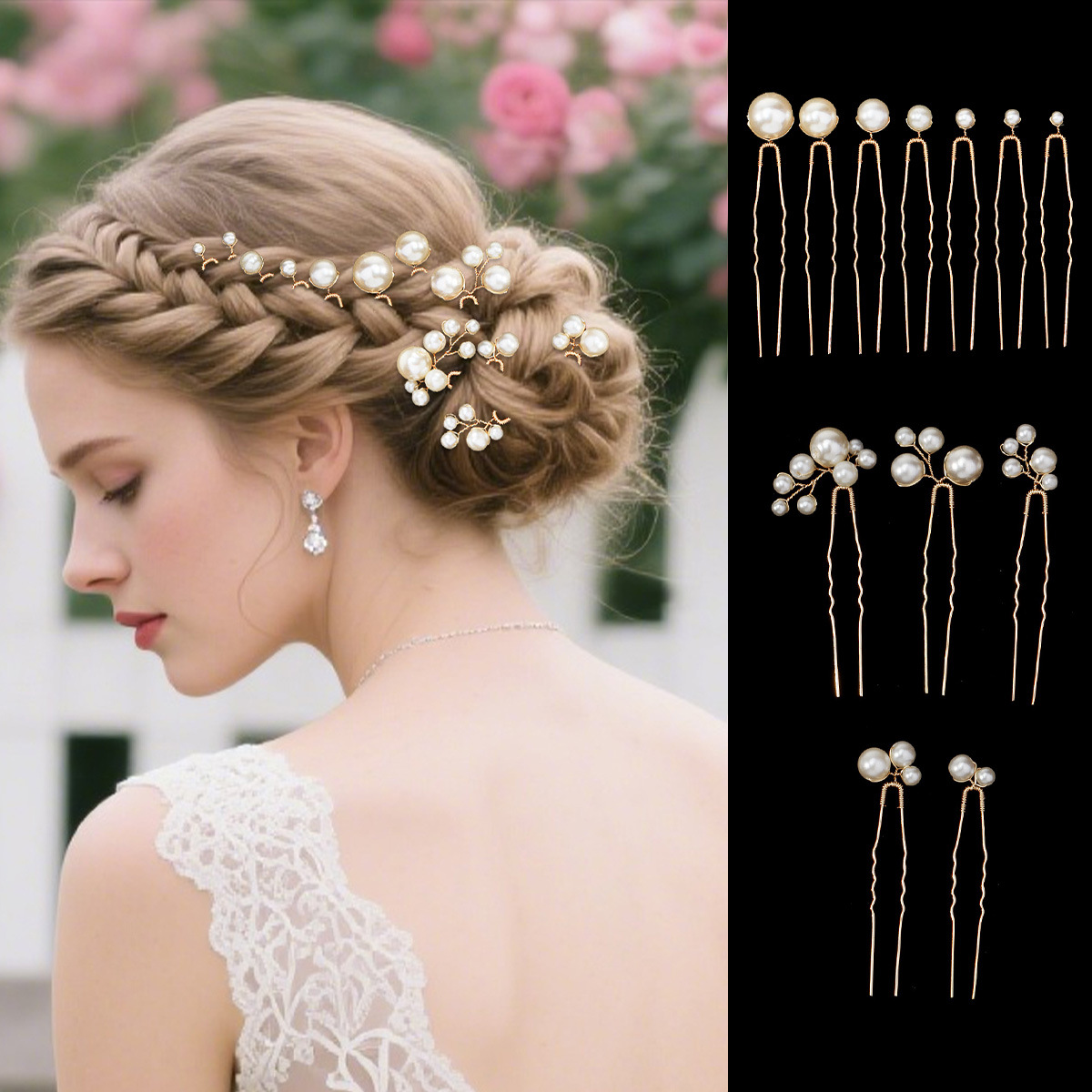 韓国花嫁ヘアピン、パールヘアピン、U字クリップ、ウェディングドレスヘアアクセサリー、シンプルピンヘアピン