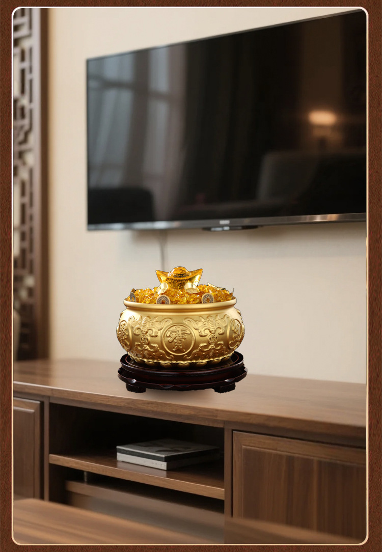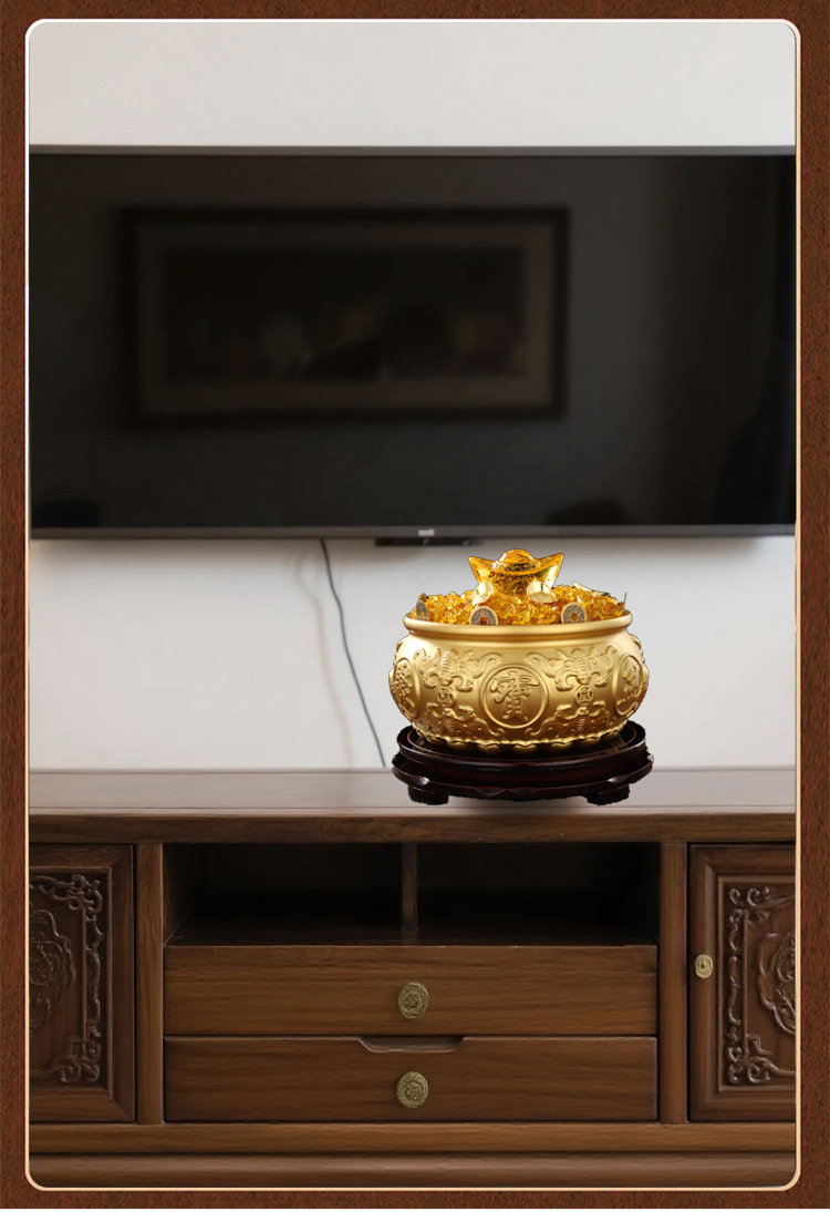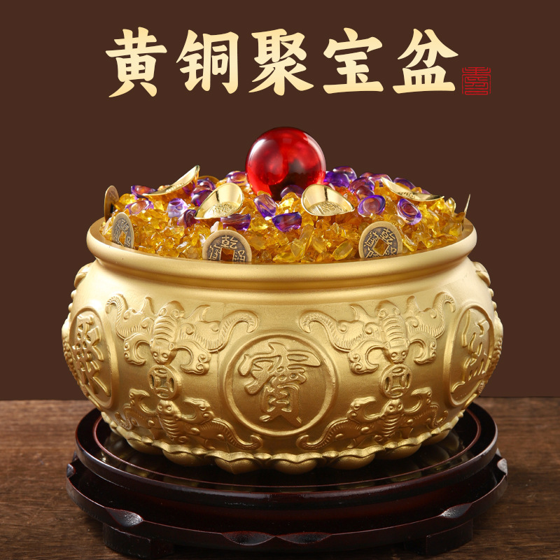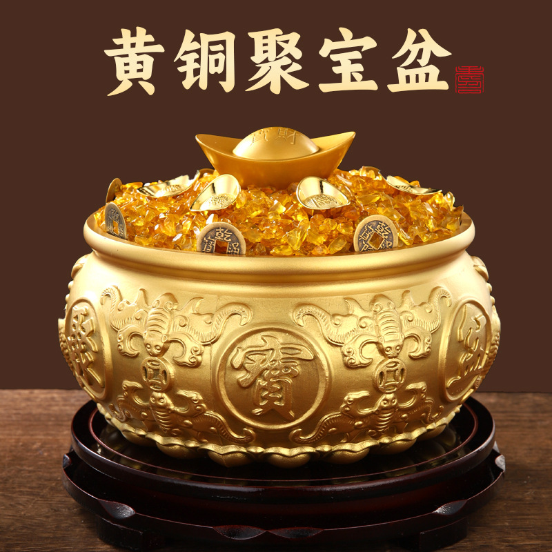 聚宝盆摆件水晶元宝纯黄铜家用存钱罐客厅店铺开业礼品八方来财