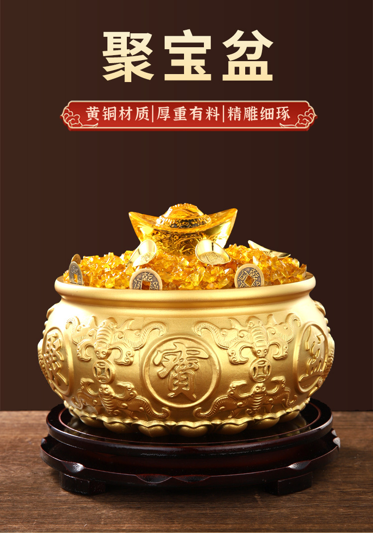 聚宝盆摆件元宝套餐纯黄铜家用存钱罐客厅店铺开业礼品八方来财
