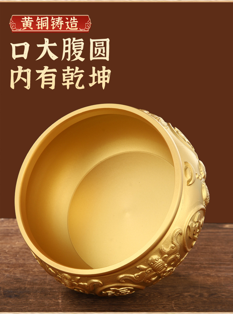 聚宝盆摆件招财聚财纯黄铜家用存钱罐客厅店铺开业礼品八方来财
