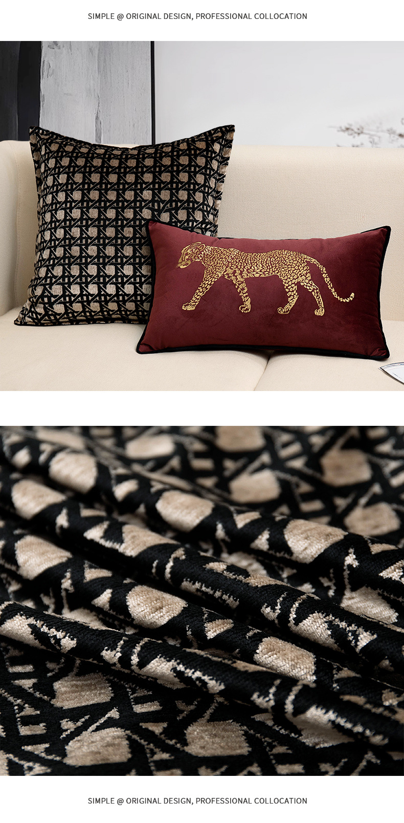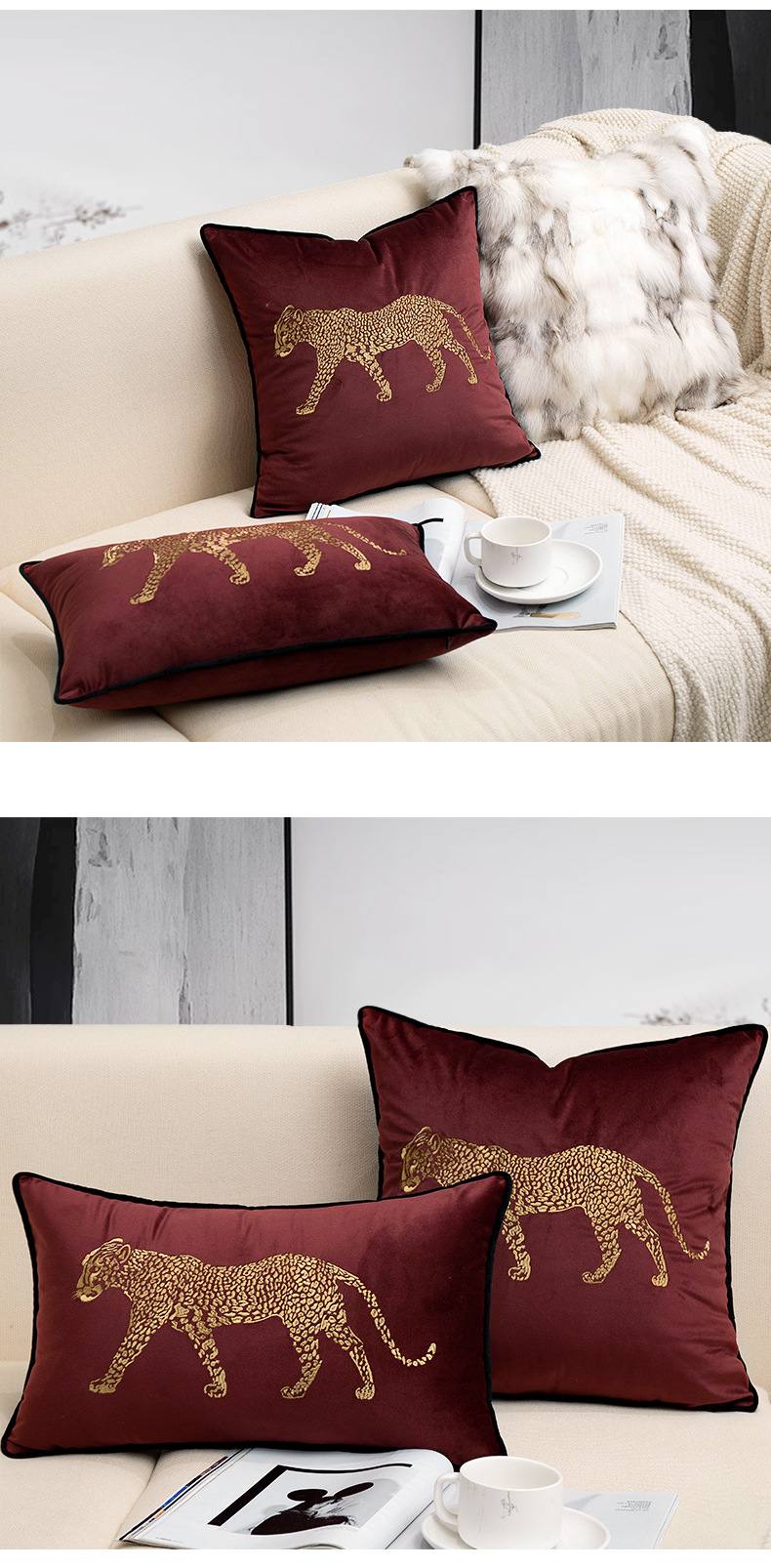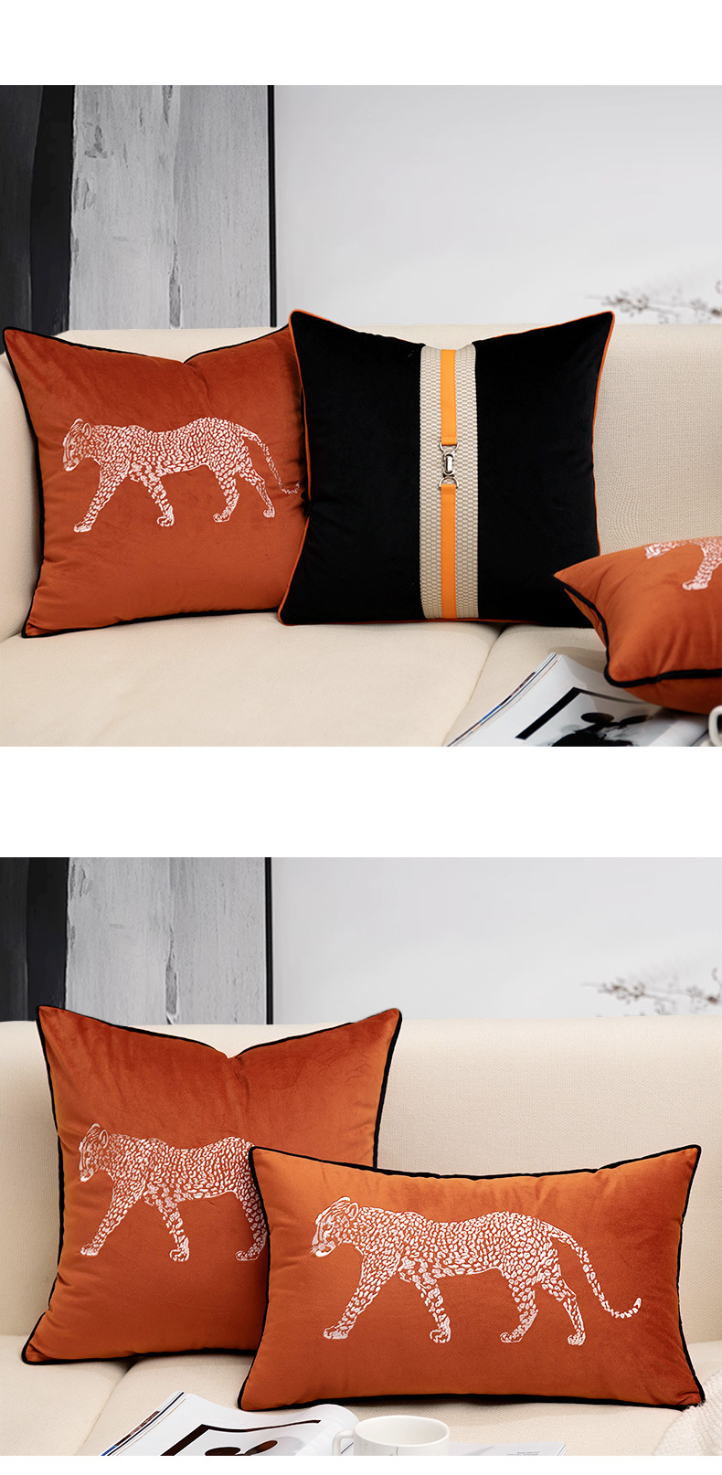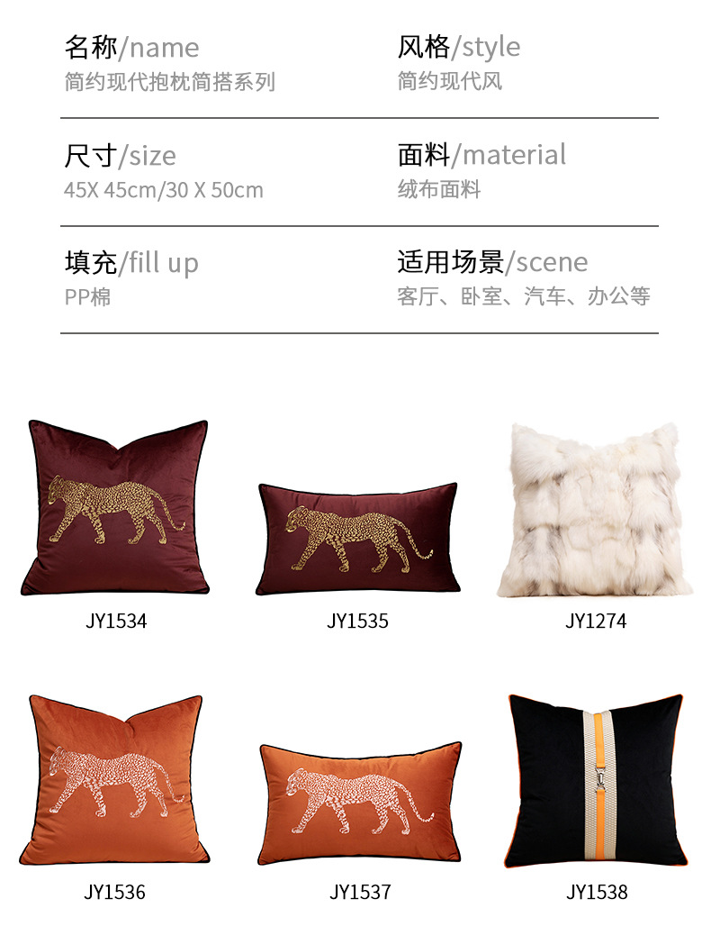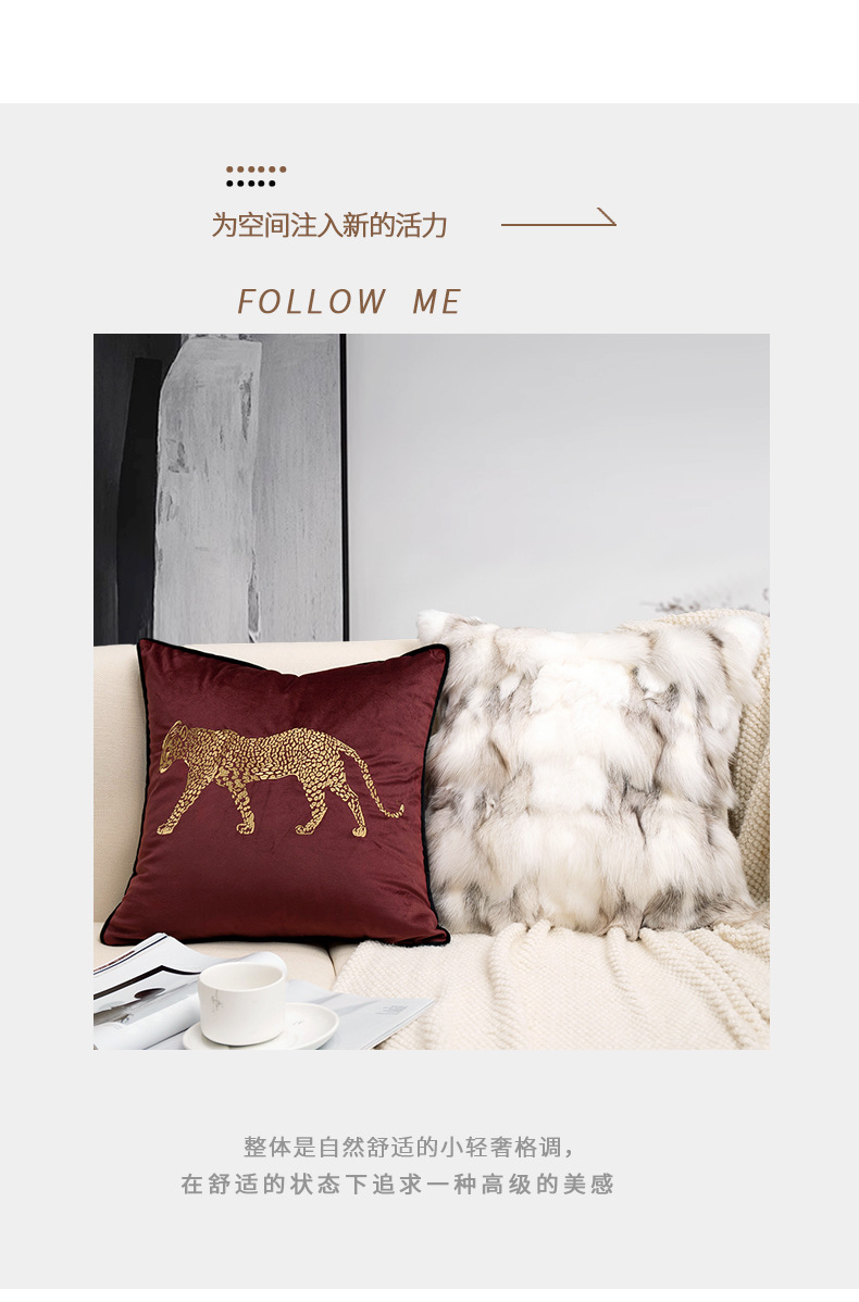 现代简约客厅沙发抱枕轻奢复古刺绣豹子靠垫民宿酒店床头装饰腰枕