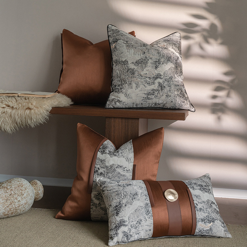 中古风客厅沙发抱枕套新中式别墅高端靠垫样板间软装靠枕腰枕绸缎
