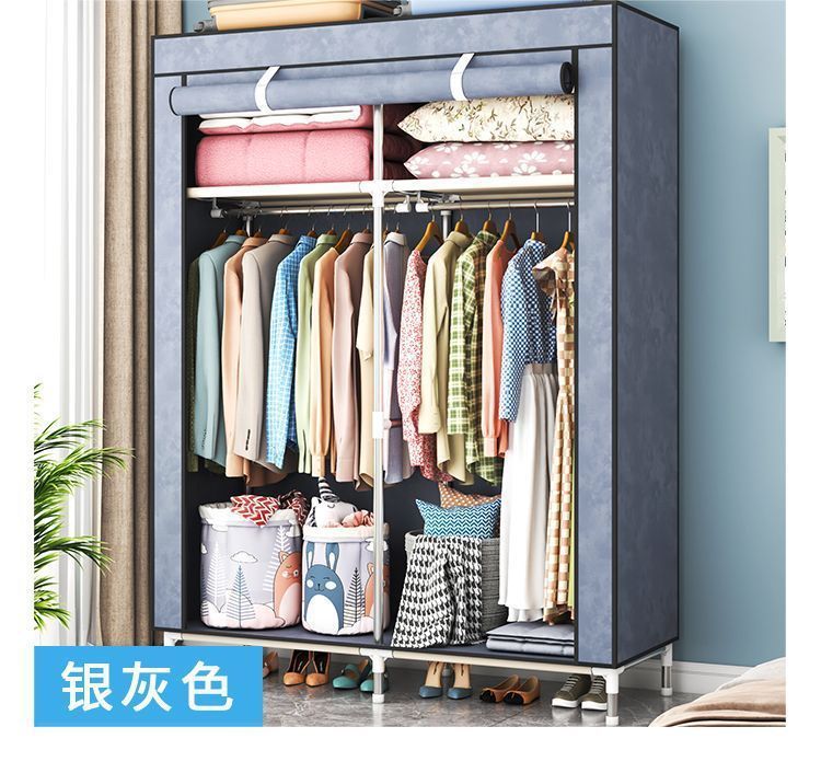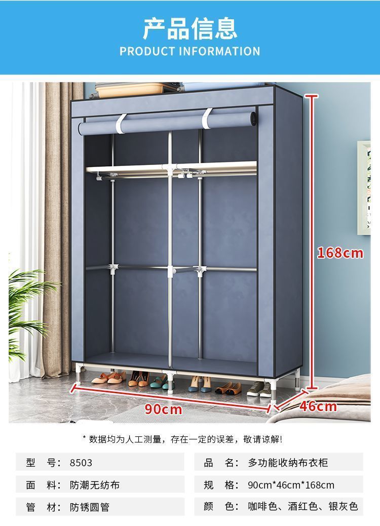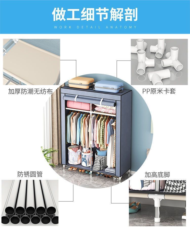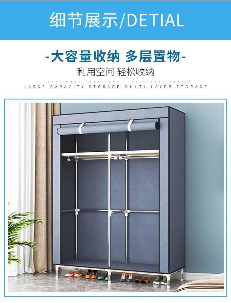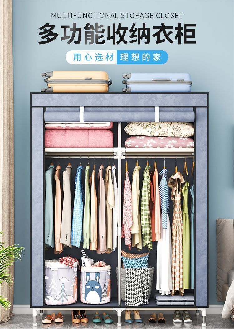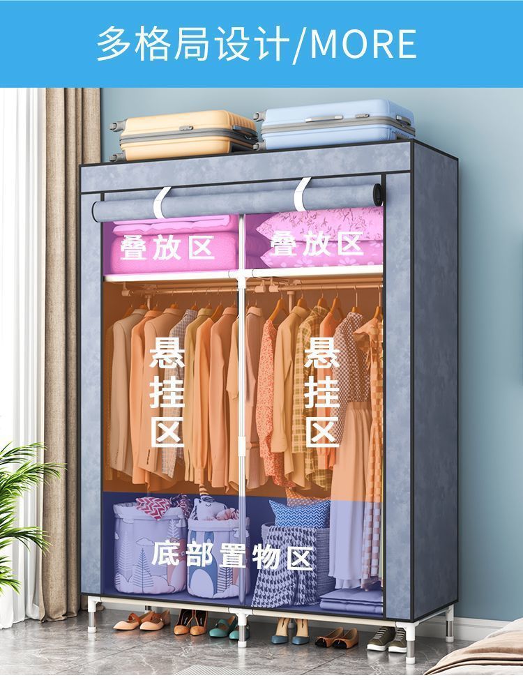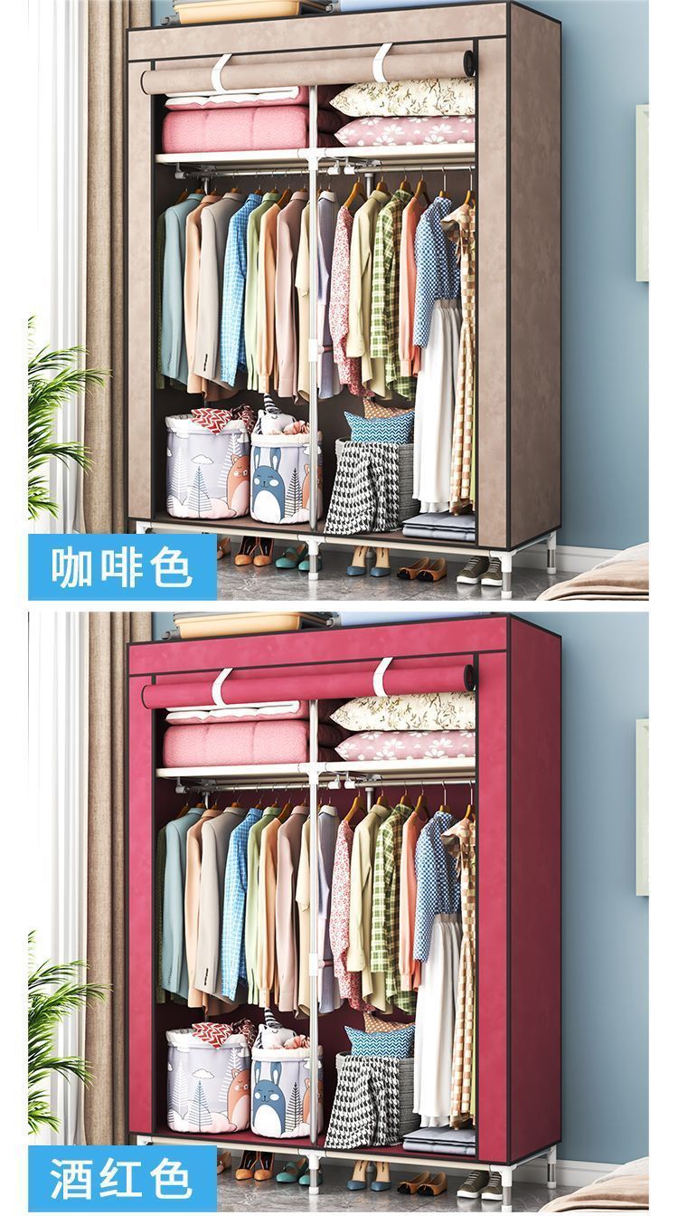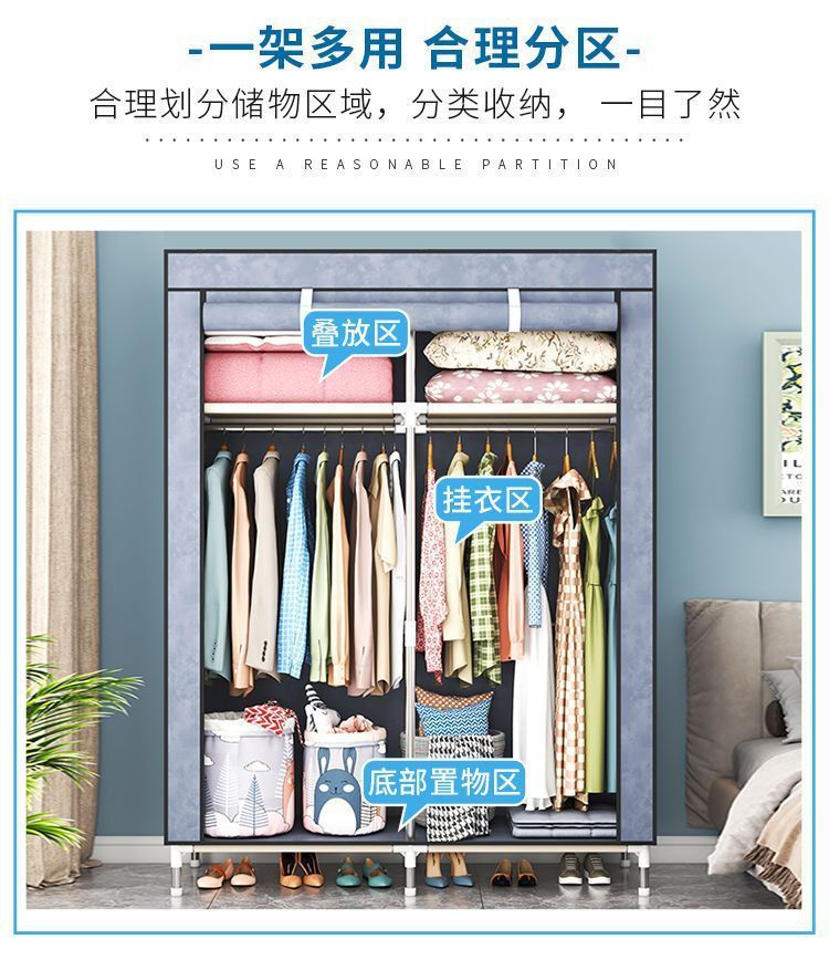 布衣柜家用卧室简易组装单人出租屋房用收纳衣橱钢管加粗加厚布套