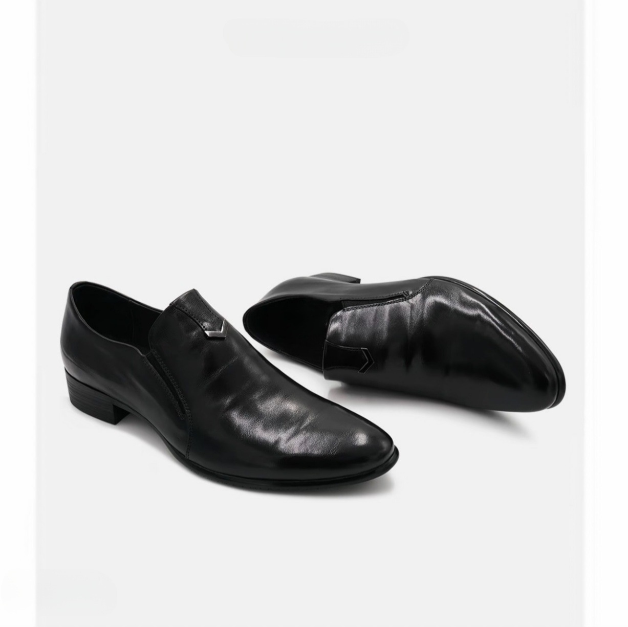 秋冬新款尖头商务皮鞋一脚蹬增高真皮皮鞋男休闲时尚百搭德比鞋
