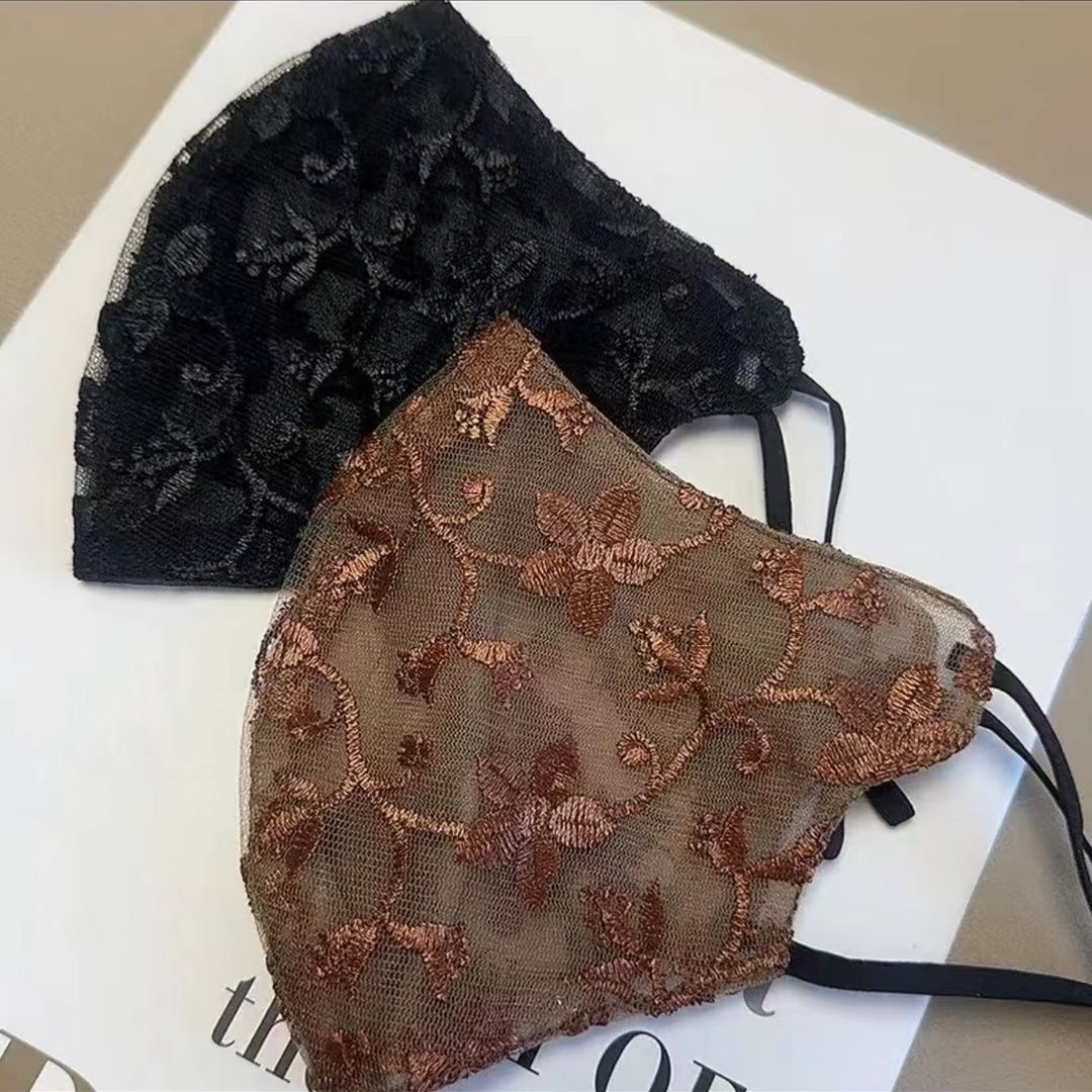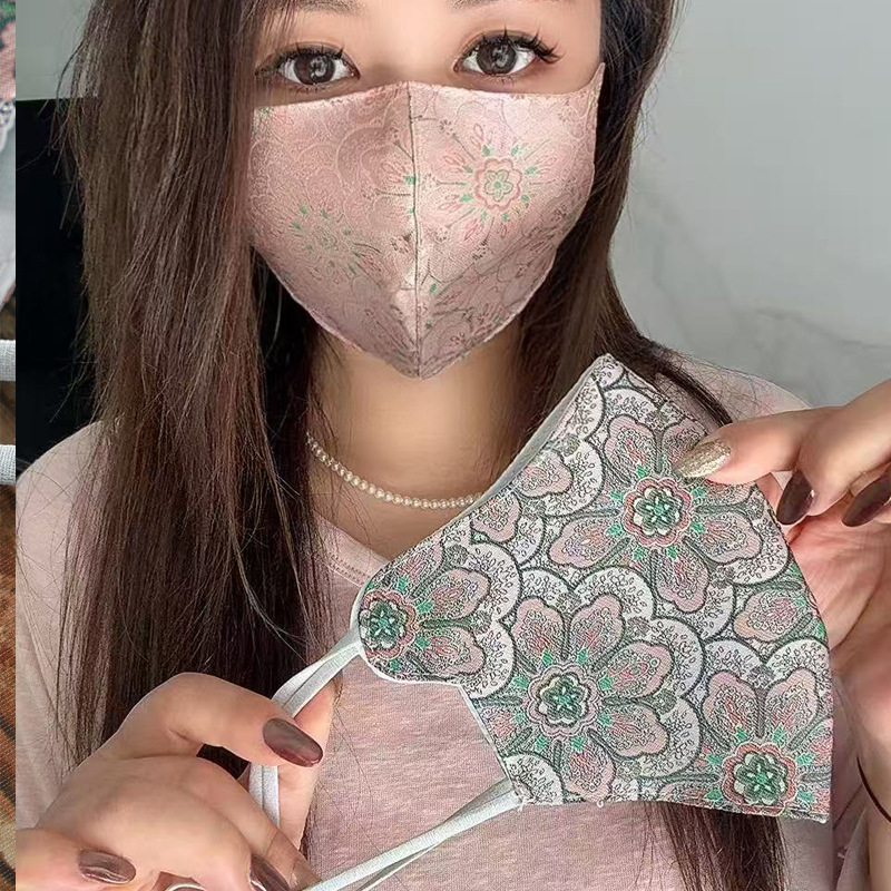 刺繍宮廷風秋冬ネット赤同マスク女神日焼け止め3d立体女性ジャカード痩せ顔小V顔