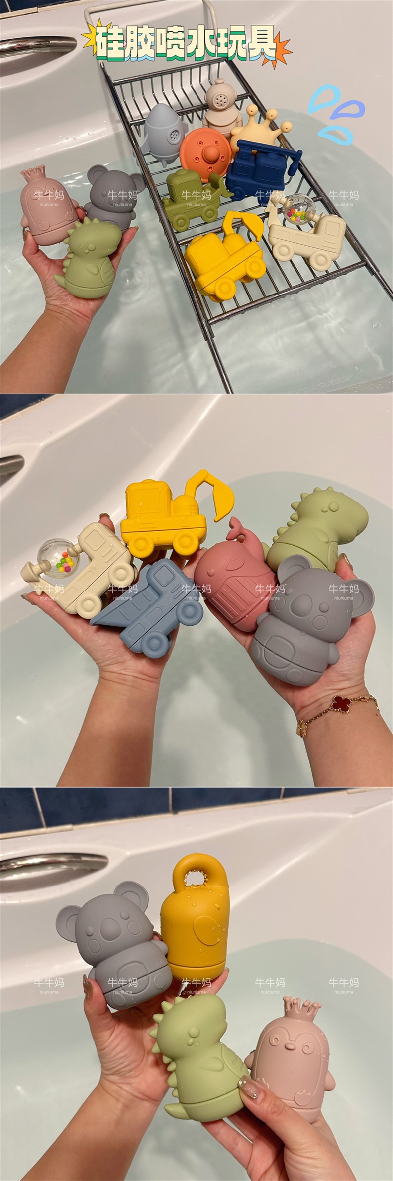 儿童宝宝洗澡硅胶玩偶动物喷洒水捏捏乐戏水游泳软胶花洒浴室玩具
