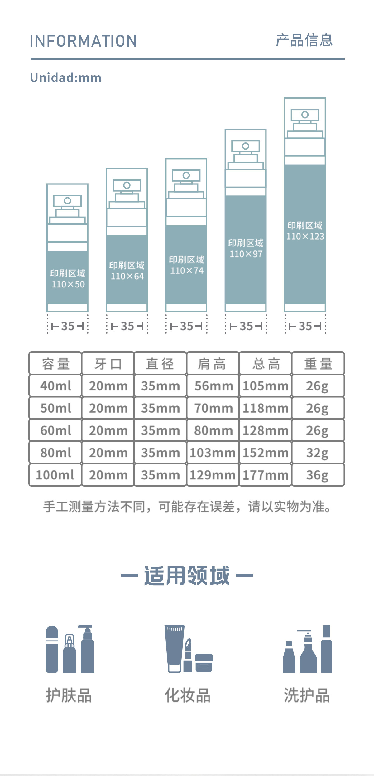 规格型号 30ml;黑色;pet,30ml;白色;pet,40ml;黑色;pet,40ml;白色;pet,50ml;黑色;pet,50ml;白色;pet,60ml;黑色;pet,60ml;白色;pet,80ml;黑色;pet,80ml;白色;pet,100ml;黑色;pet,100ml;白色;pet