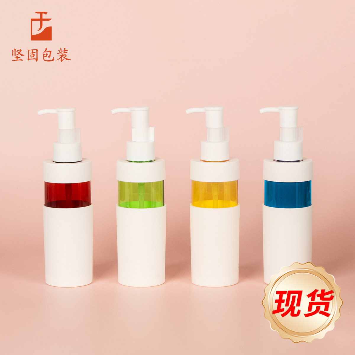 工場直販 ファンデーションボトル 100ml ローション分注ボトル 二層カラーブロック ボディローションボトル PET プッシュポンプボトル