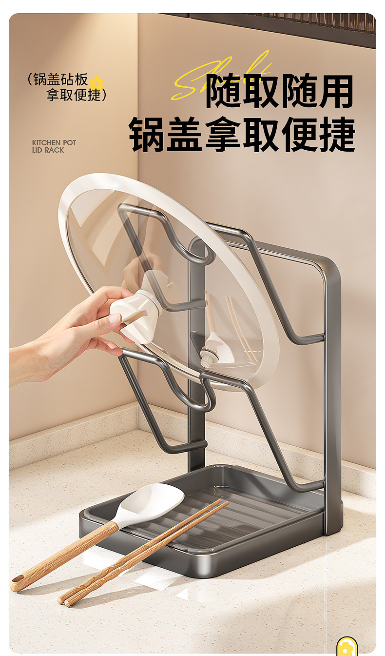 新款简奢ABS锅盖架 厨房置物架免打孔放锅铲菜板架砧板收纳架家用