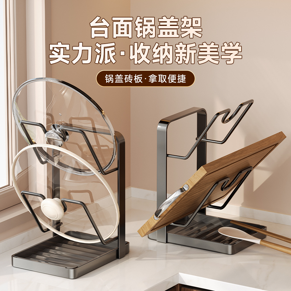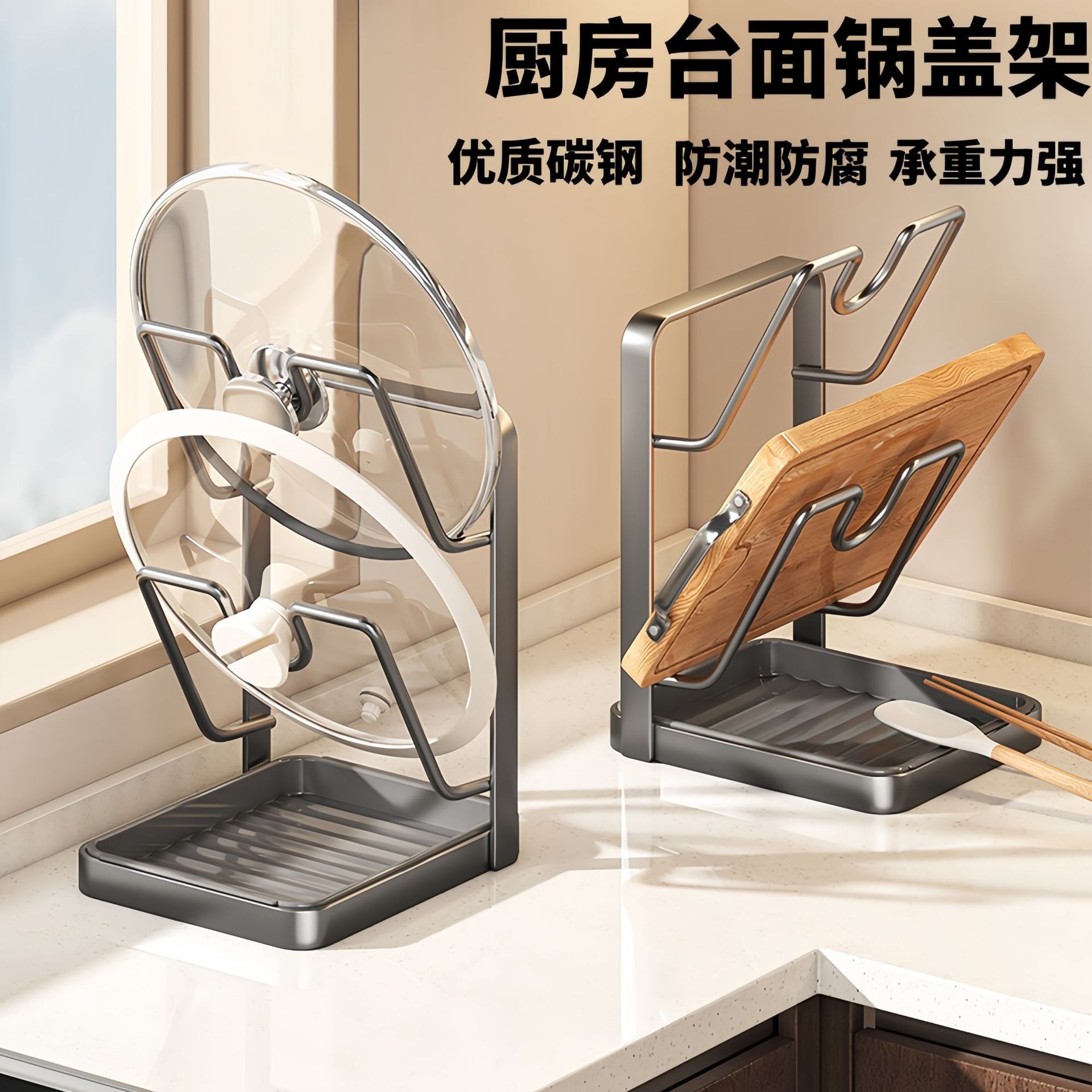 爆款台面家用多功能厨房锅盖架砧板架多层板坐式锅铲沥水一件代发