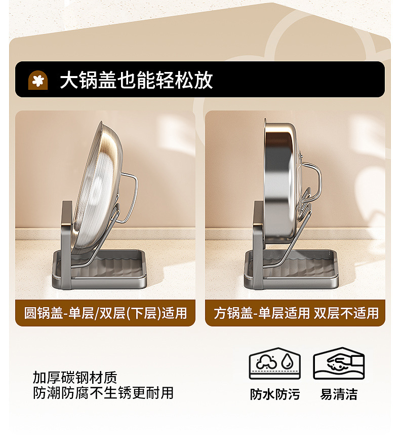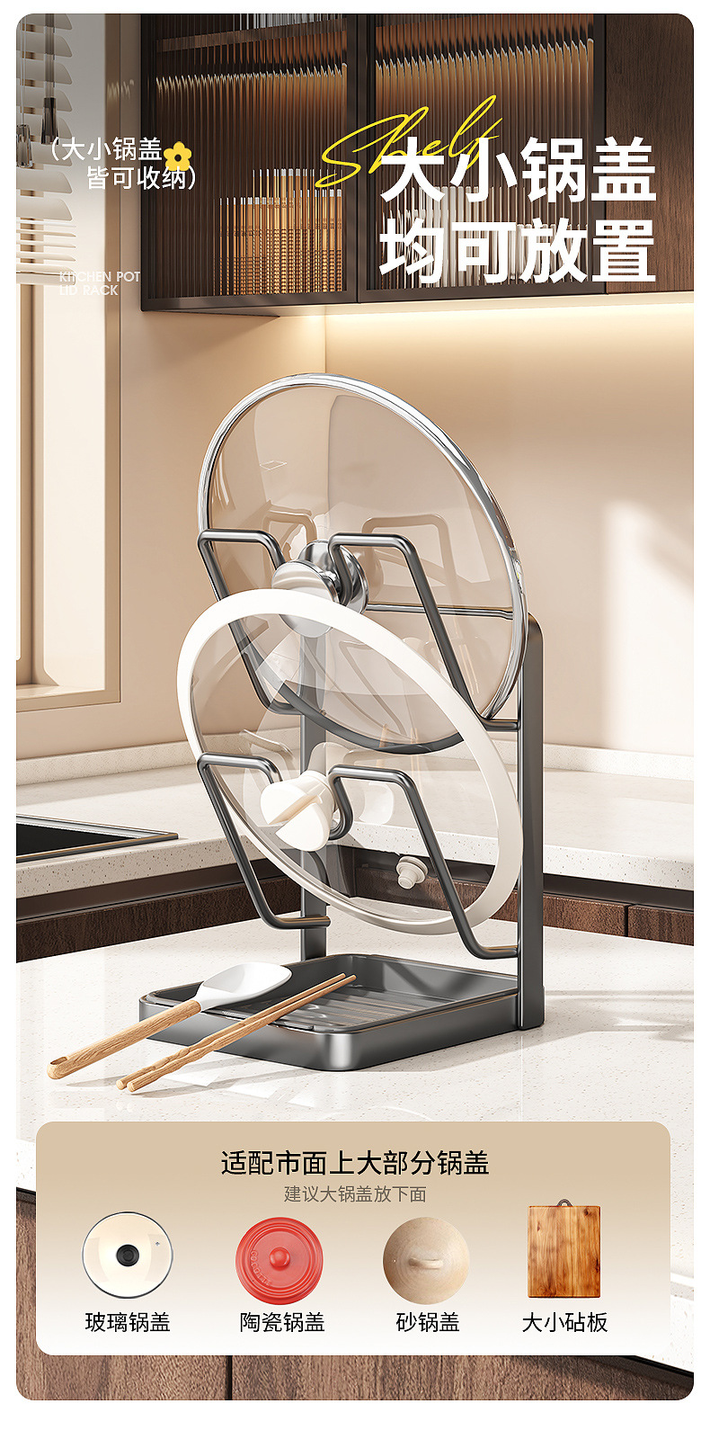 锈钢锅盖厨房置物刀菜板纳新锅盖纳台面亚黑奶白碳钢