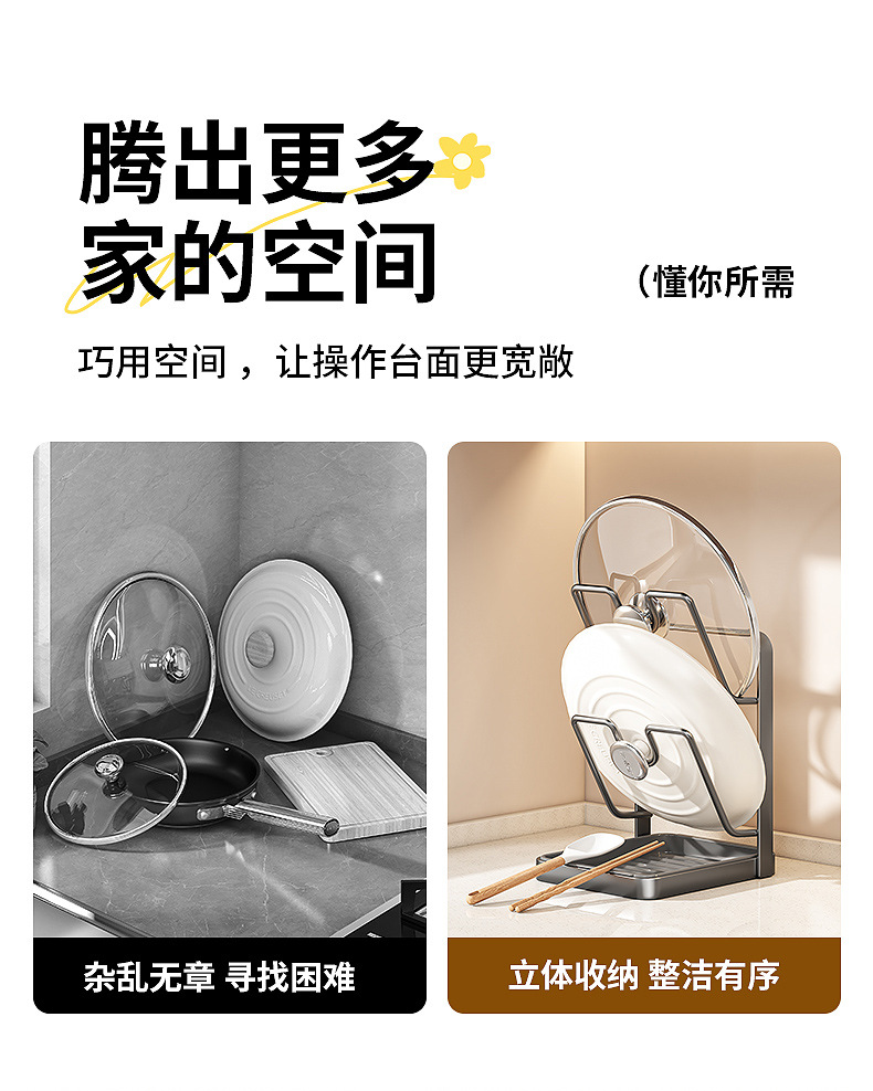 锅盖架台面锅铲架厨房多功能收纳置物架家用立式菜板放置器免安装