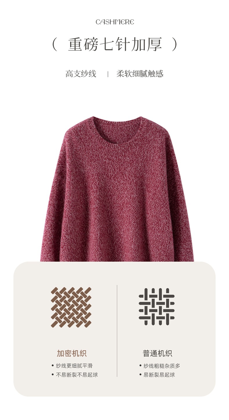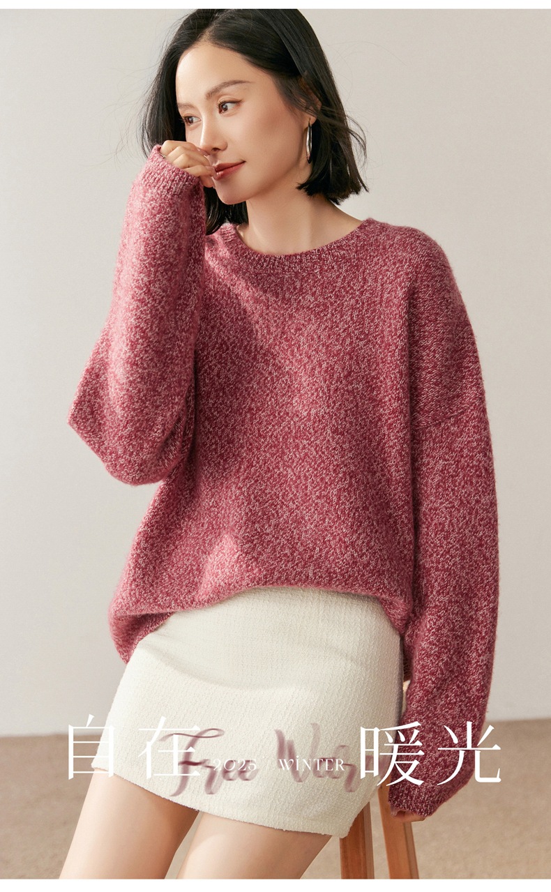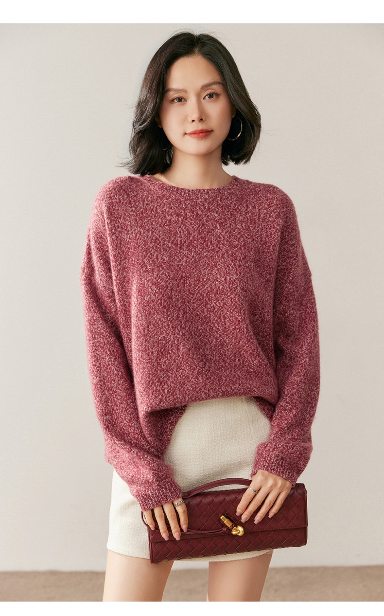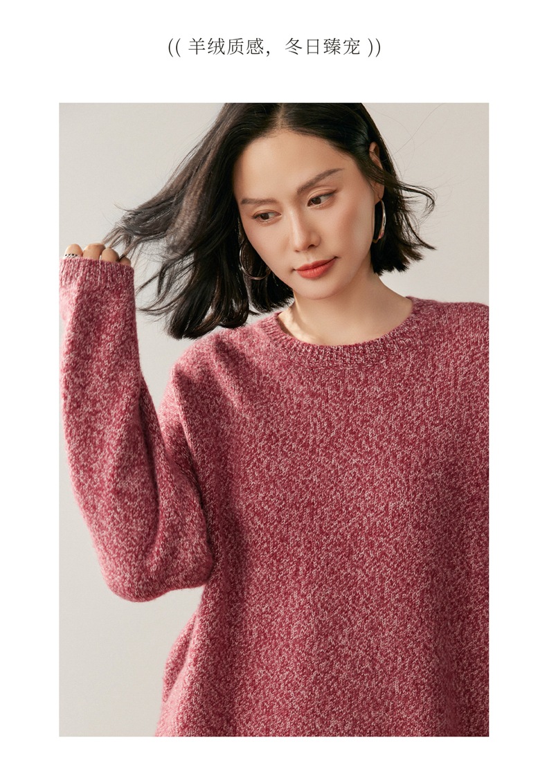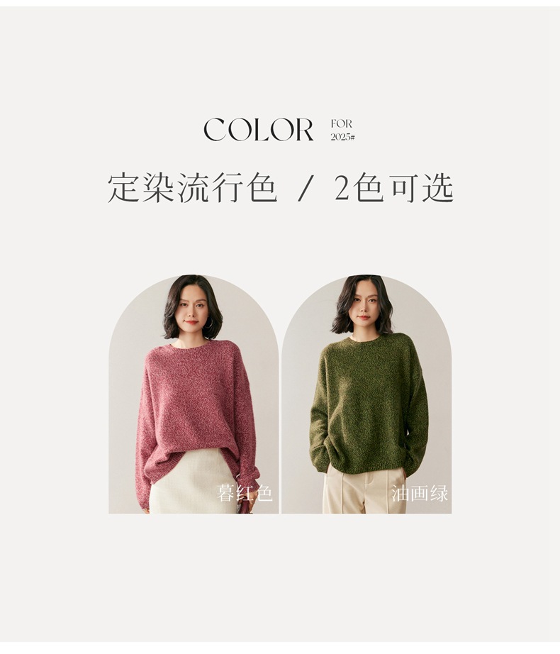 山羊绒衫女圆领宽松毛衣落肩针织衫糯亲肤显士气质打底上衣软花纱