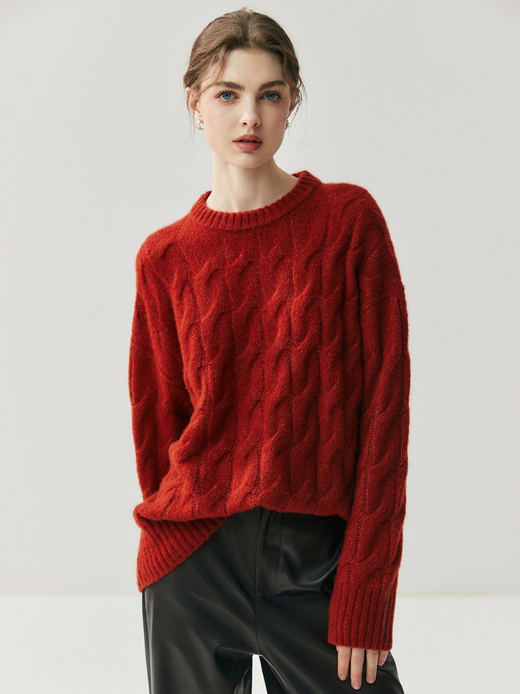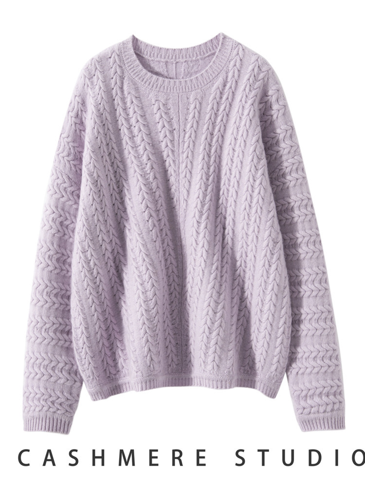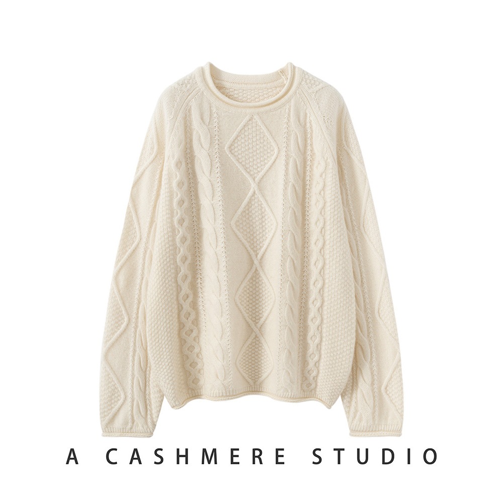 五针三股慵懒风全身绞花纯色女山羊绒针织打底衫厚款套头毛衣上衣