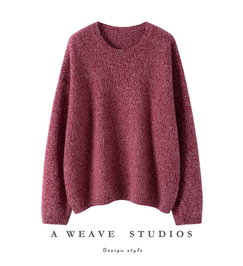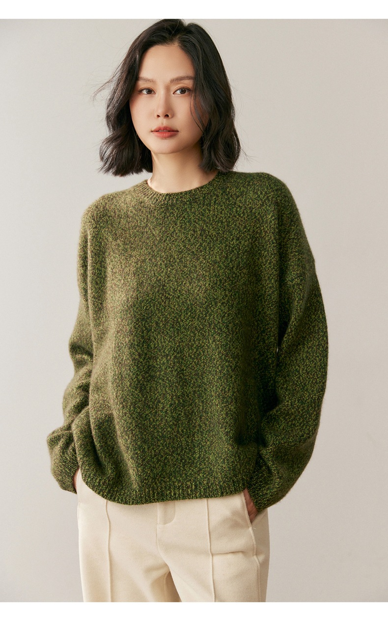 秋冬新款花纱时尚山羊绒衫女圆领套头毛衣宽松打底慵懒风宽松女士