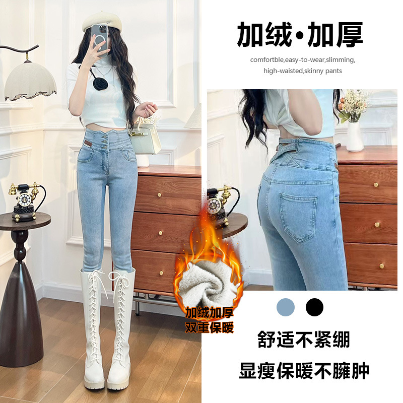 加绒浅色高腰牛仔裤女秋冬2025新款修身显瘦设计感辣妹爆款裤子女