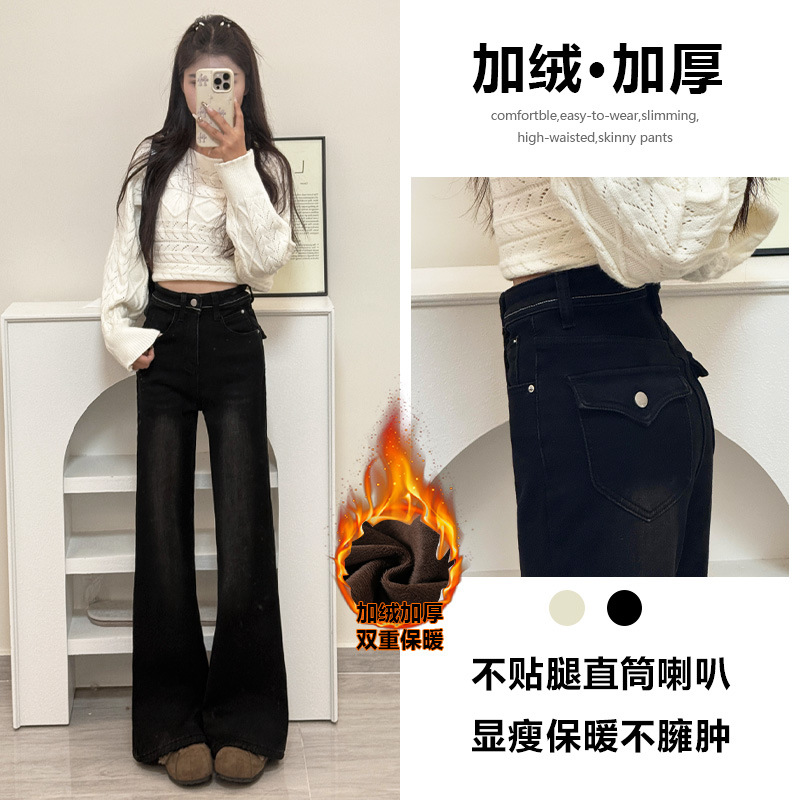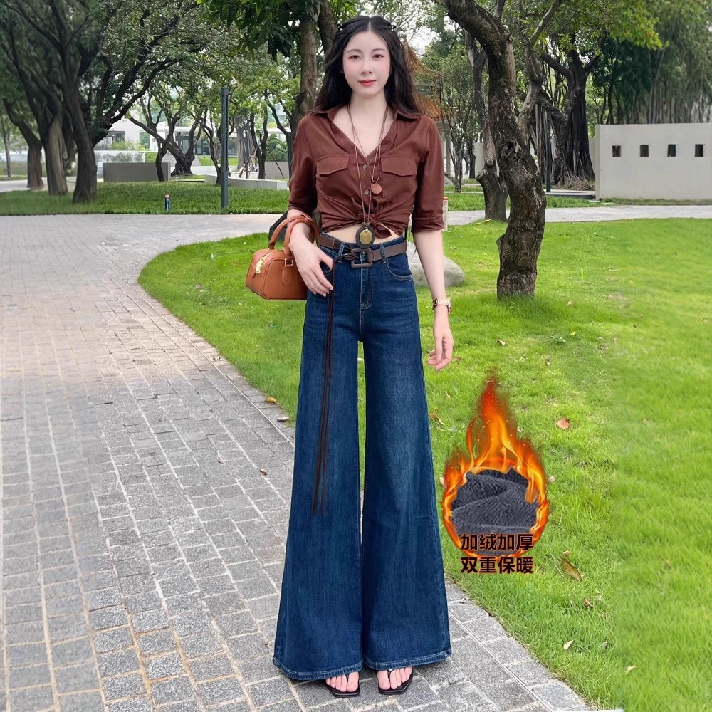 加绒阔腿喇叭牛仔裤女秋冬季新款辣妹高级感拖地今年流行爆款裤子