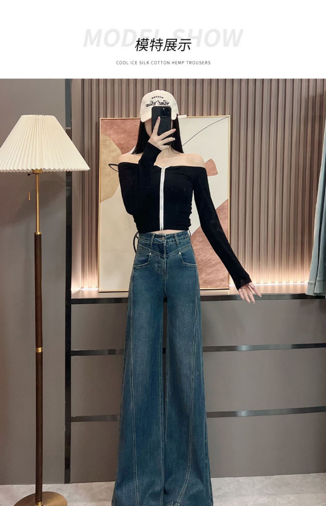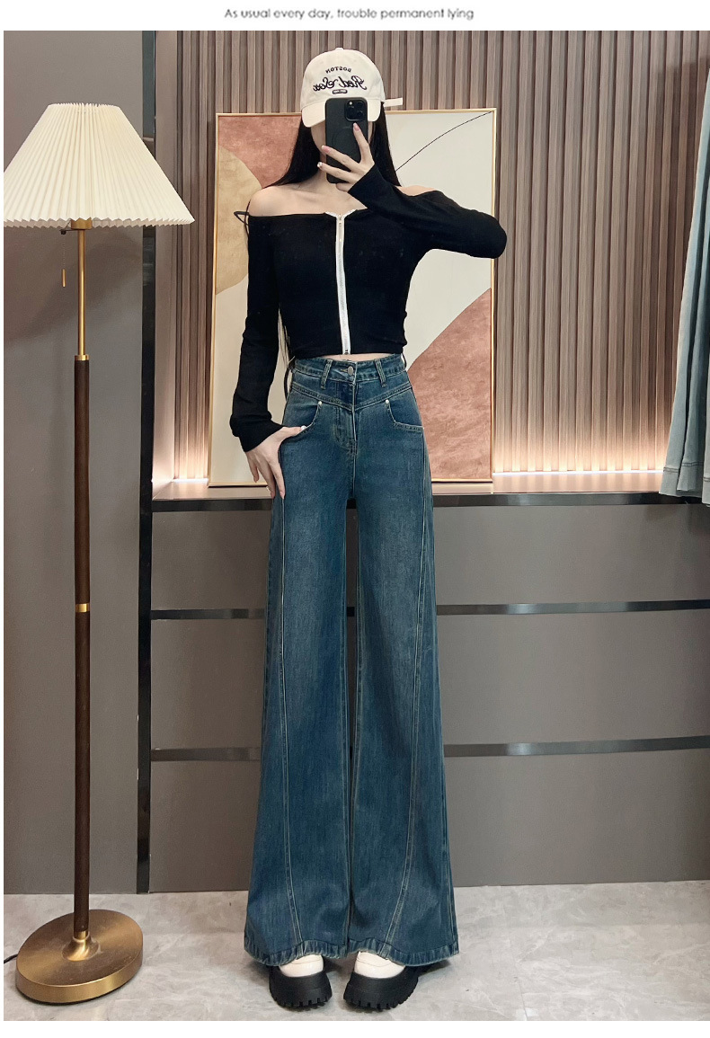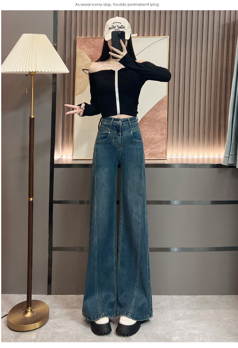设计感阔腿牛仔裤女春秋季2025新款宽松美式高街洋气小个子直筒裤