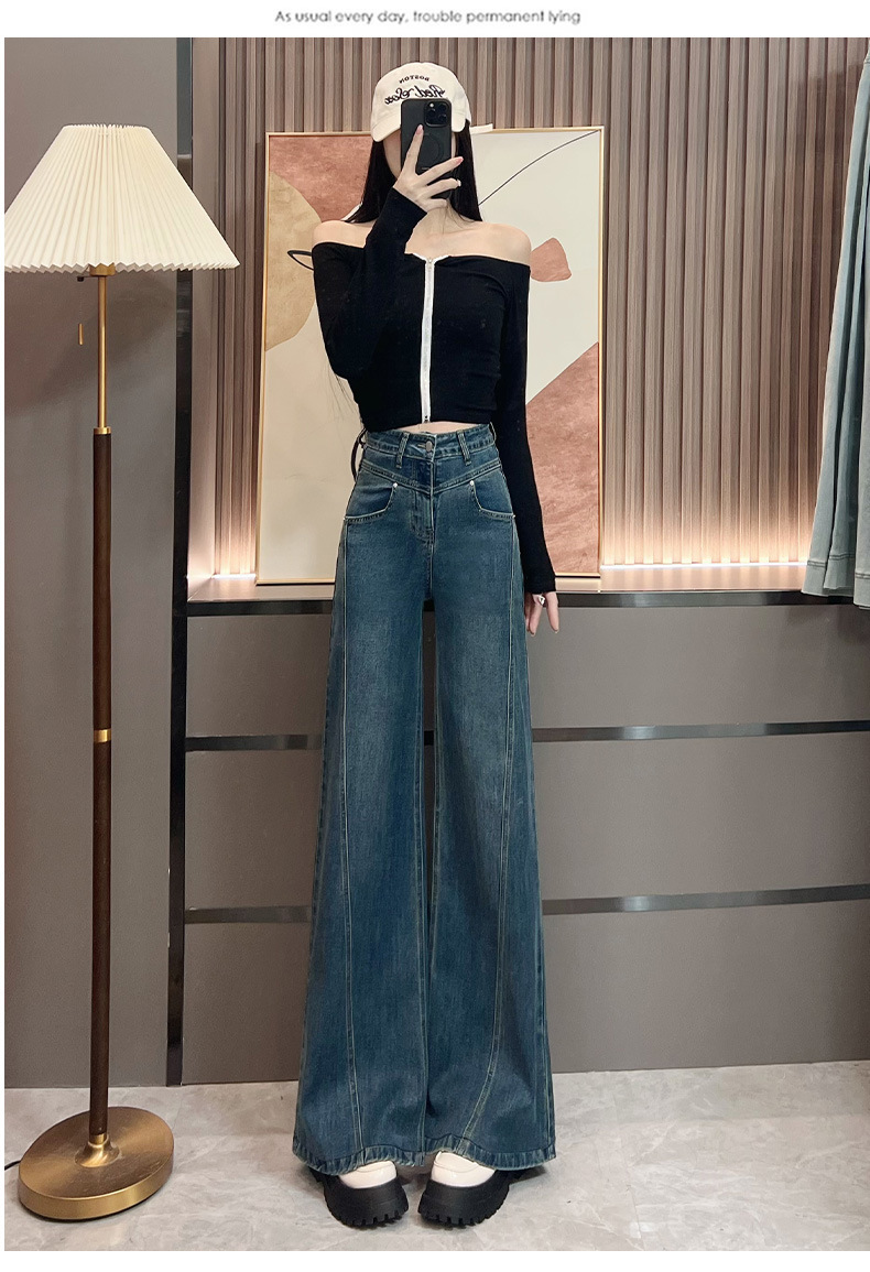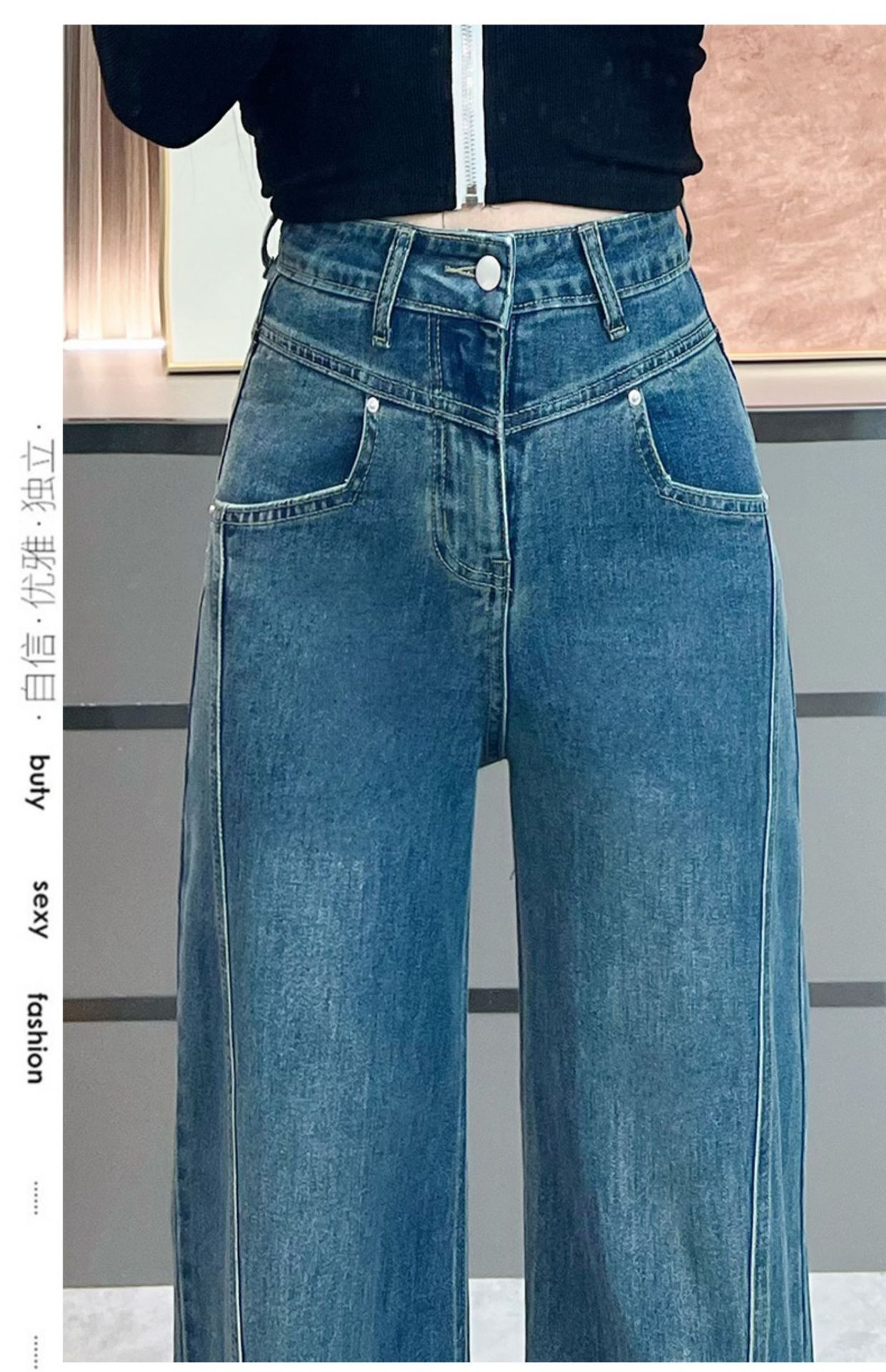 阔腿牛仔裤女春秋2025年新款显瘦时尚潮流宽松拖地垂感直筒裤子女
